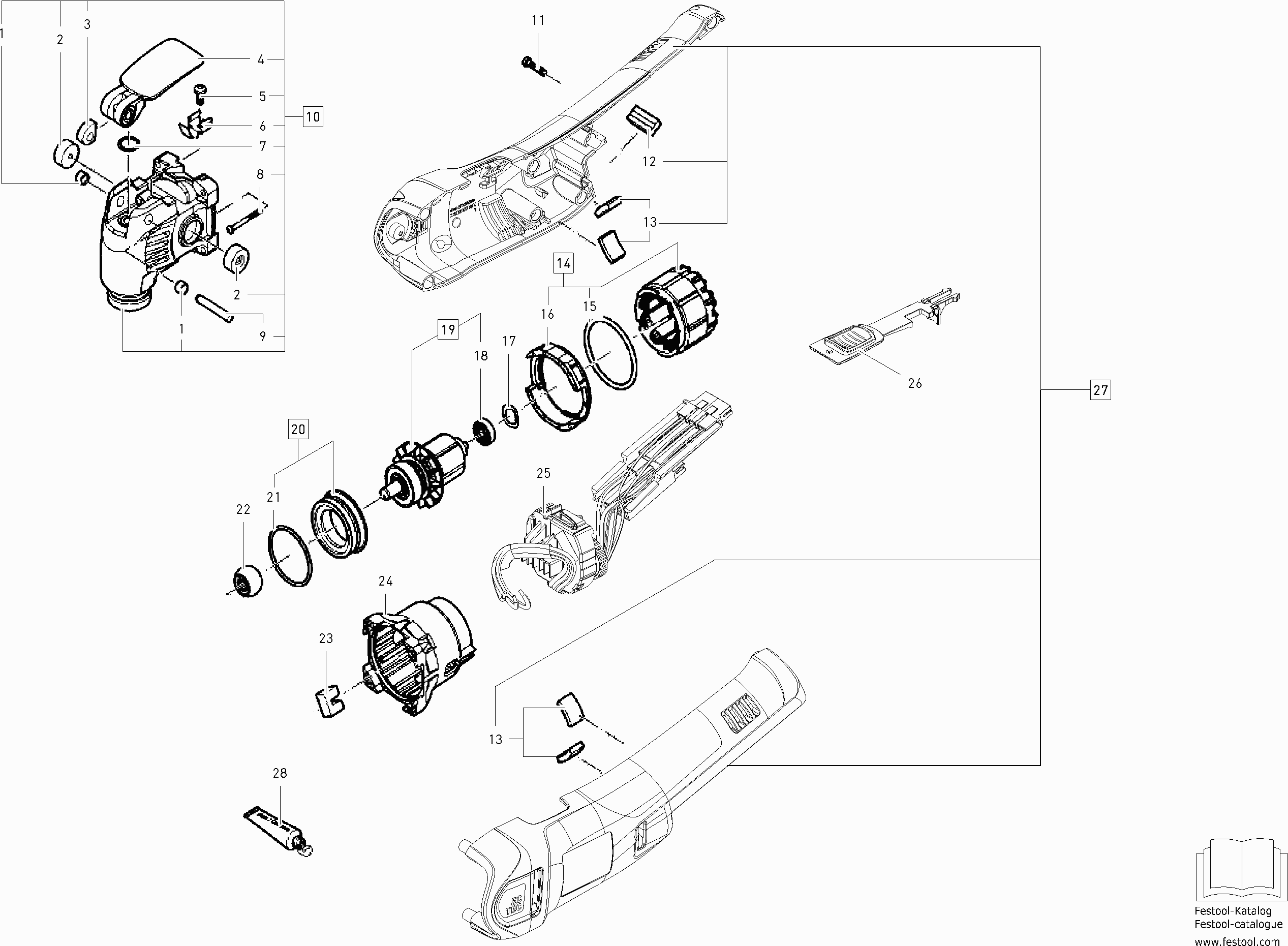 Here you will find all available parts and drawings of the 'Festool 10041860 ( OSC18LIEEU )'. From here you can order all desired parts directly. Many parts must be ordered from the manufacturer, depending on the brand, this takes one to four weeks. All the information we have is on our website, we cannot advise you on what you need, for that you will need to return the machine for repair. Please note the following when ordering: