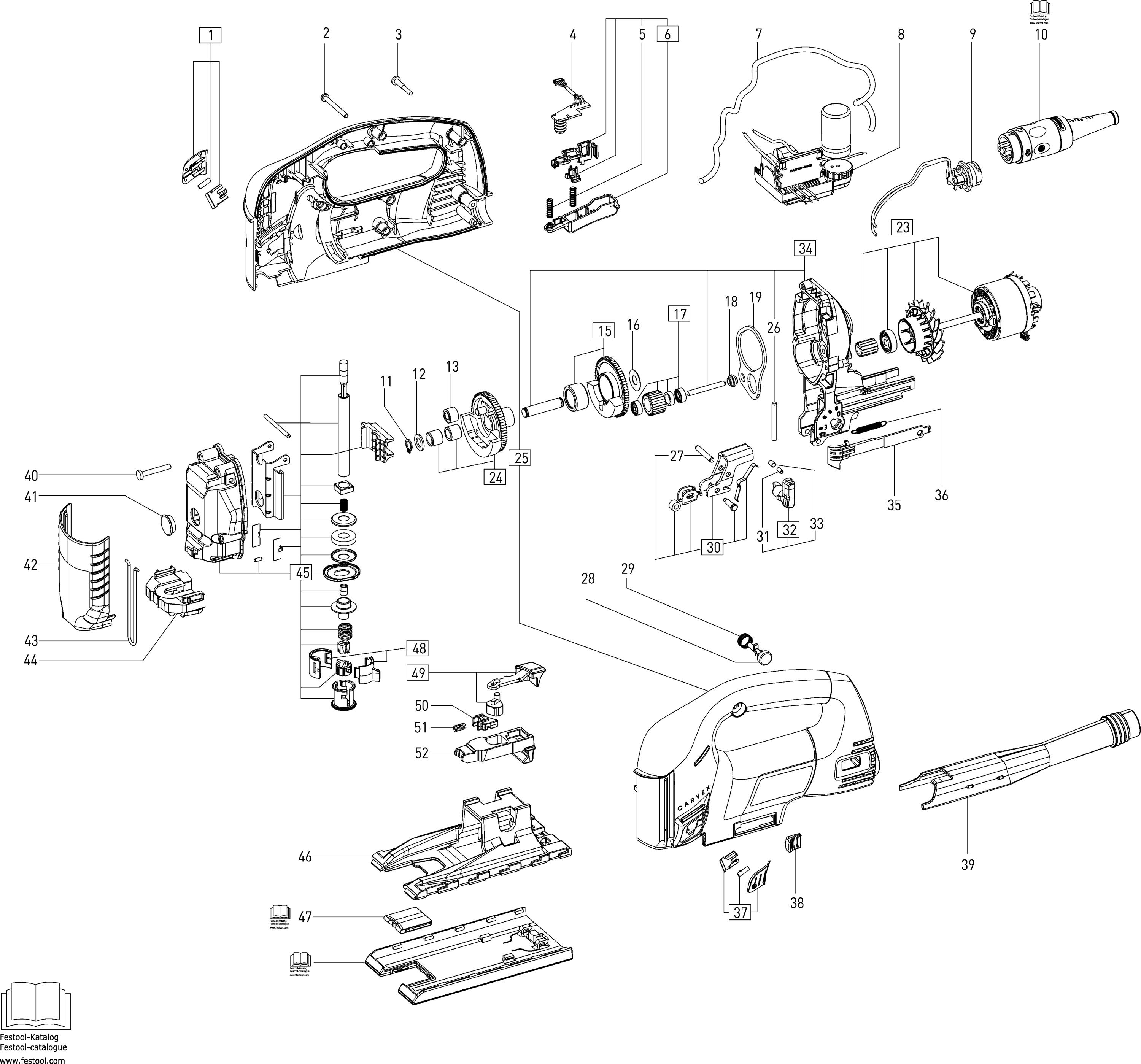 Here you will find all available parts and drawings of the 'Festool 496057 ( PSB400EBQ230V )'. From here you can order all desired parts directly. Many parts must be ordered from the manufacturer, depending on the brand, this takes one to four weeks. All the information we have is on our website, we cannot advise you on what you need, for that you will need to return the machine for repair. Please note the following when ordering: