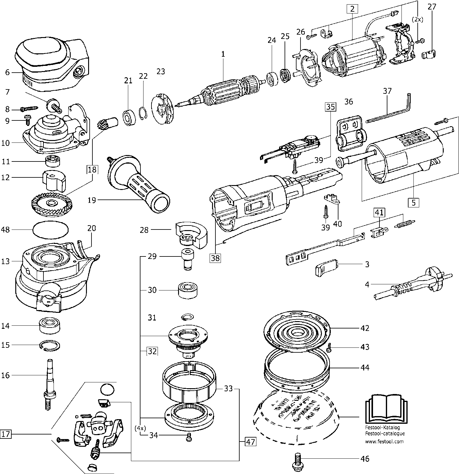 Here you will find all available parts and drawings of the 'Festool 487902 ( RO150E )'. From here you can order all desired parts directly. Many parts must be ordered from the manufacturer, depending on the brand, this takes one to four weeks. All the information we have is on our website, we cannot advise you on what you need, for that you will need to return the machine for repair. Please note the following when ordering: