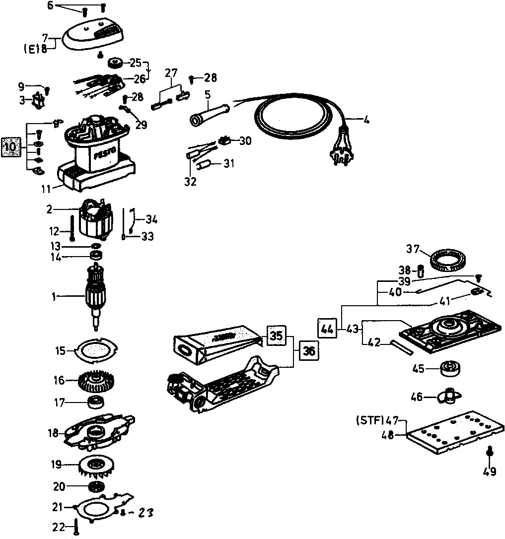 Here you will find all available parts and drawings of the 'Festool 486864 ( RS4E )'. From here you can order all desired parts directly. Many parts must be ordered from the manufacturer, depending on the brand, this takes one to four weeks. All the information we have is on our website, we cannot advise you on what you need, for that you will need to return the machine for repair. Please note the following when ordering: