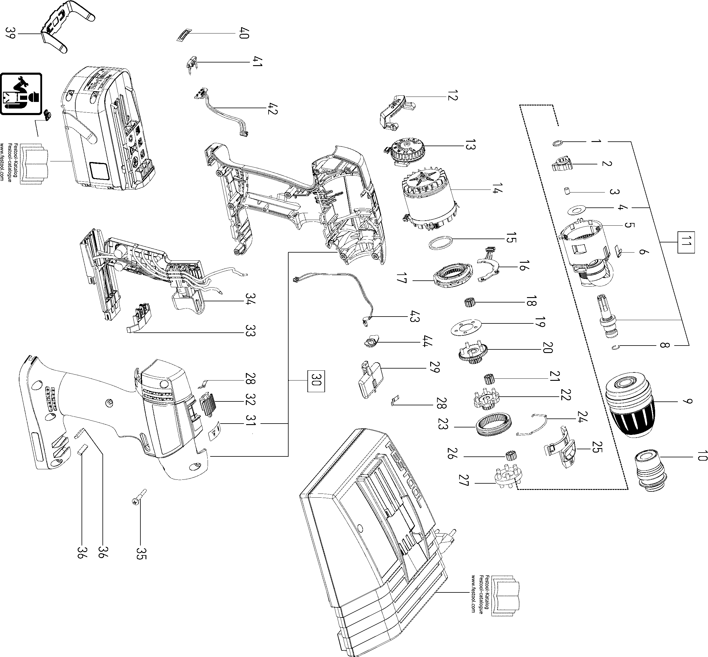 Here you will find all available parts and drawings of the 'Festool 497835 ( T12+3LIFL )'. From here you can order all desired parts directly. Many parts must be ordered from the manufacturer, depending on the brand, this takes one to four weeks. All the information we have is on our website, we cannot advise you on what you need, for that you will need to return the machine for repair. Please note the following when ordering: