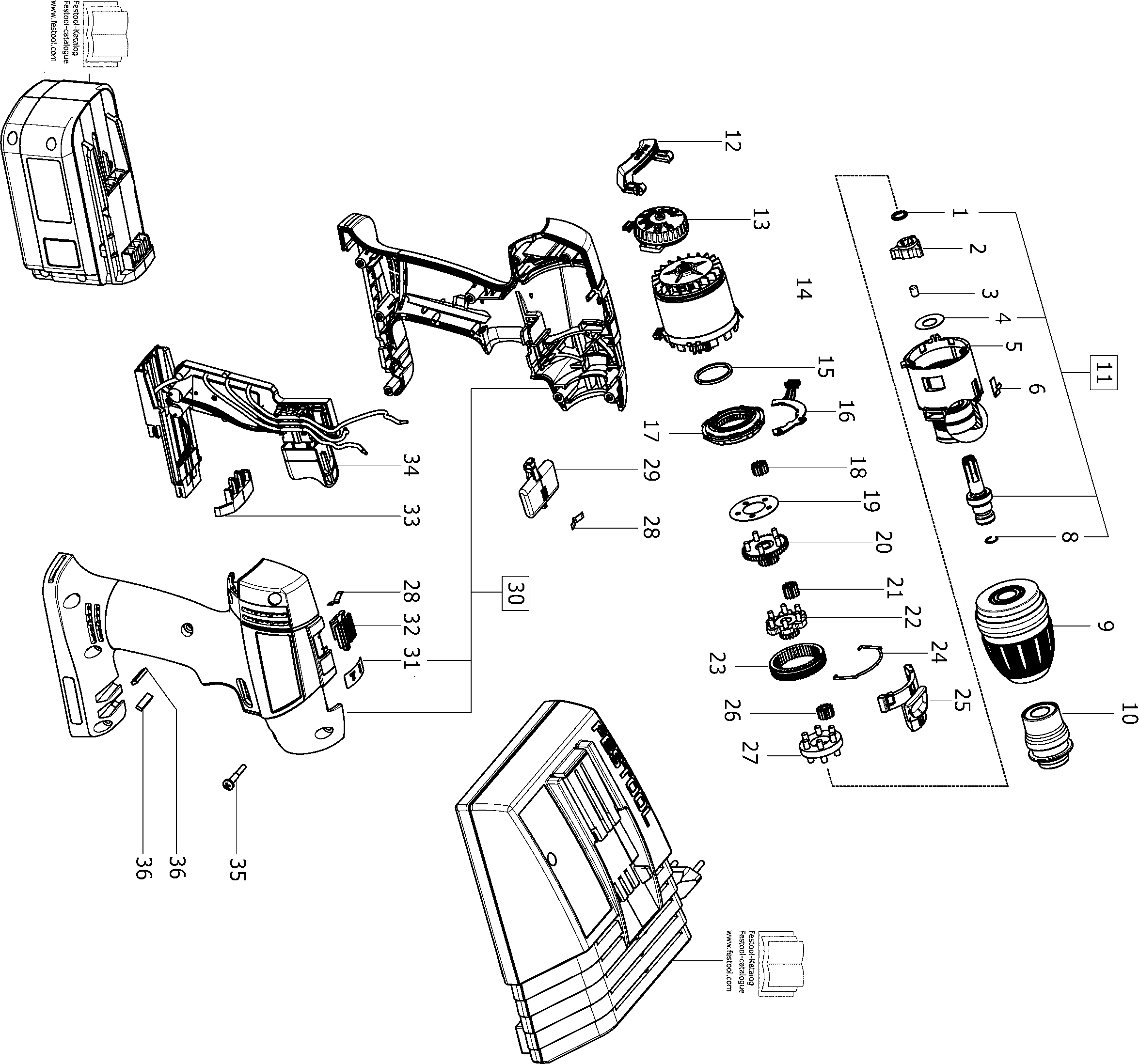 Here you will find all available parts and drawings of the 'Festool 494374 ( T15+3 )'. From here you can order all desired parts directly. Many parts must be ordered from the manufacturer, depending on the brand, this takes one to four weeks. All the information we have is on our website, we cannot advise you on what you need, for that you will need to return the machine for repair. Please note the following when ordering:
