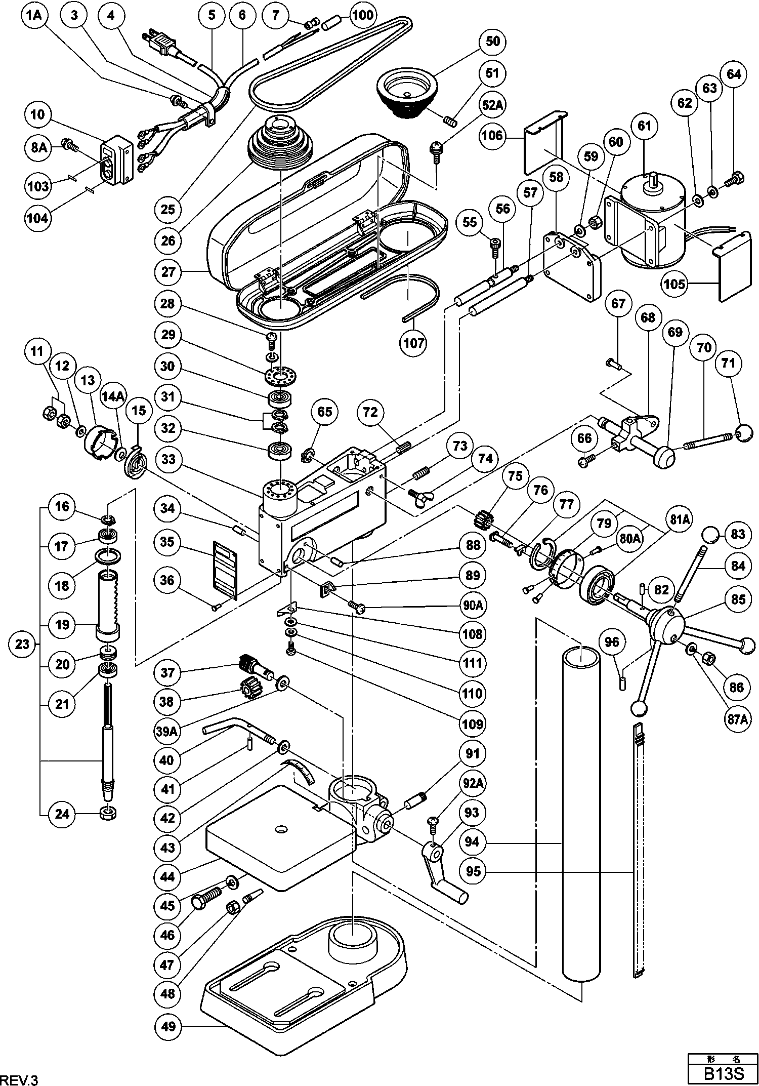 Technical drawing of model Hikoki B13S