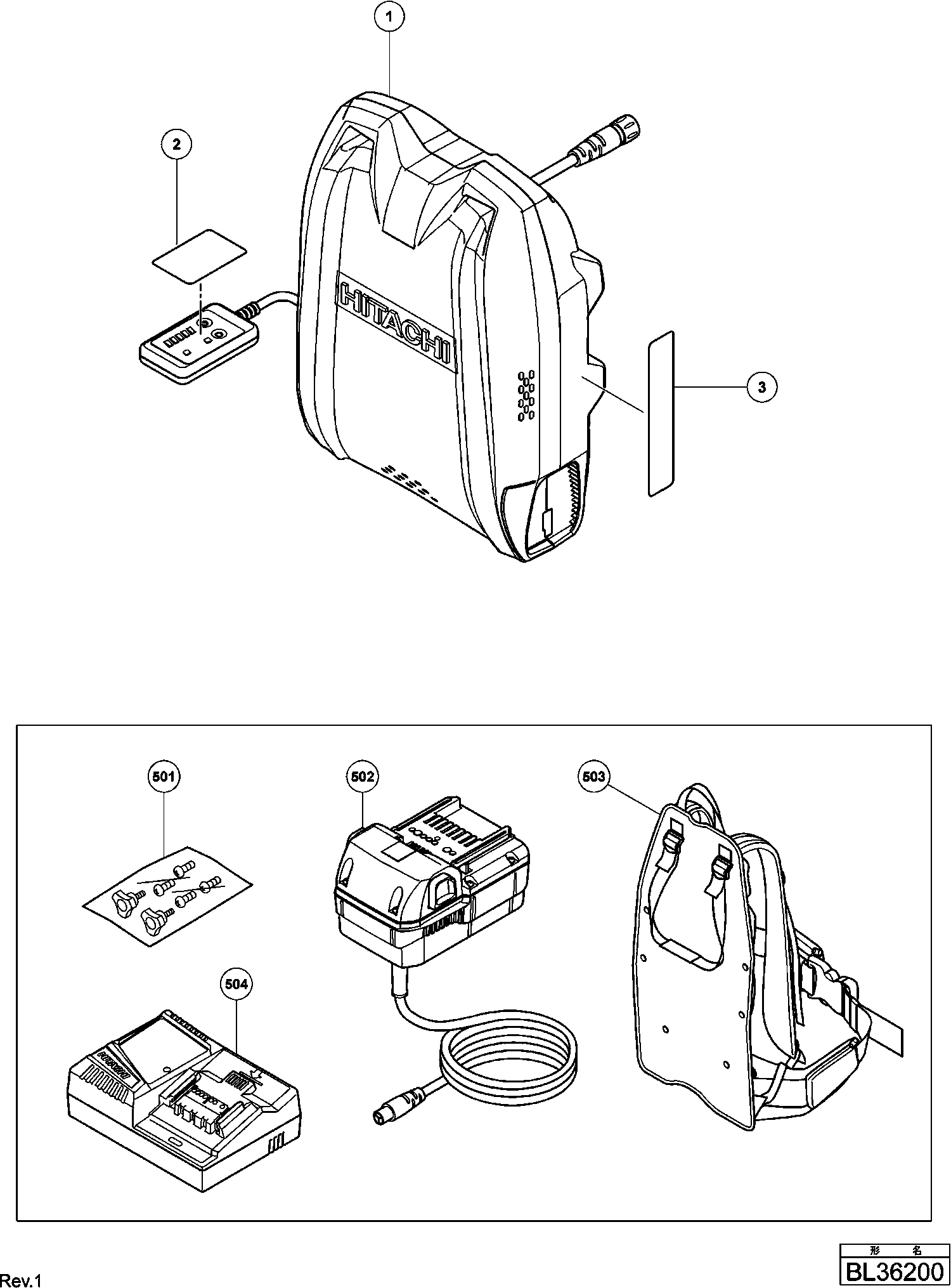 Spare parts list of model Hikoki BL36200