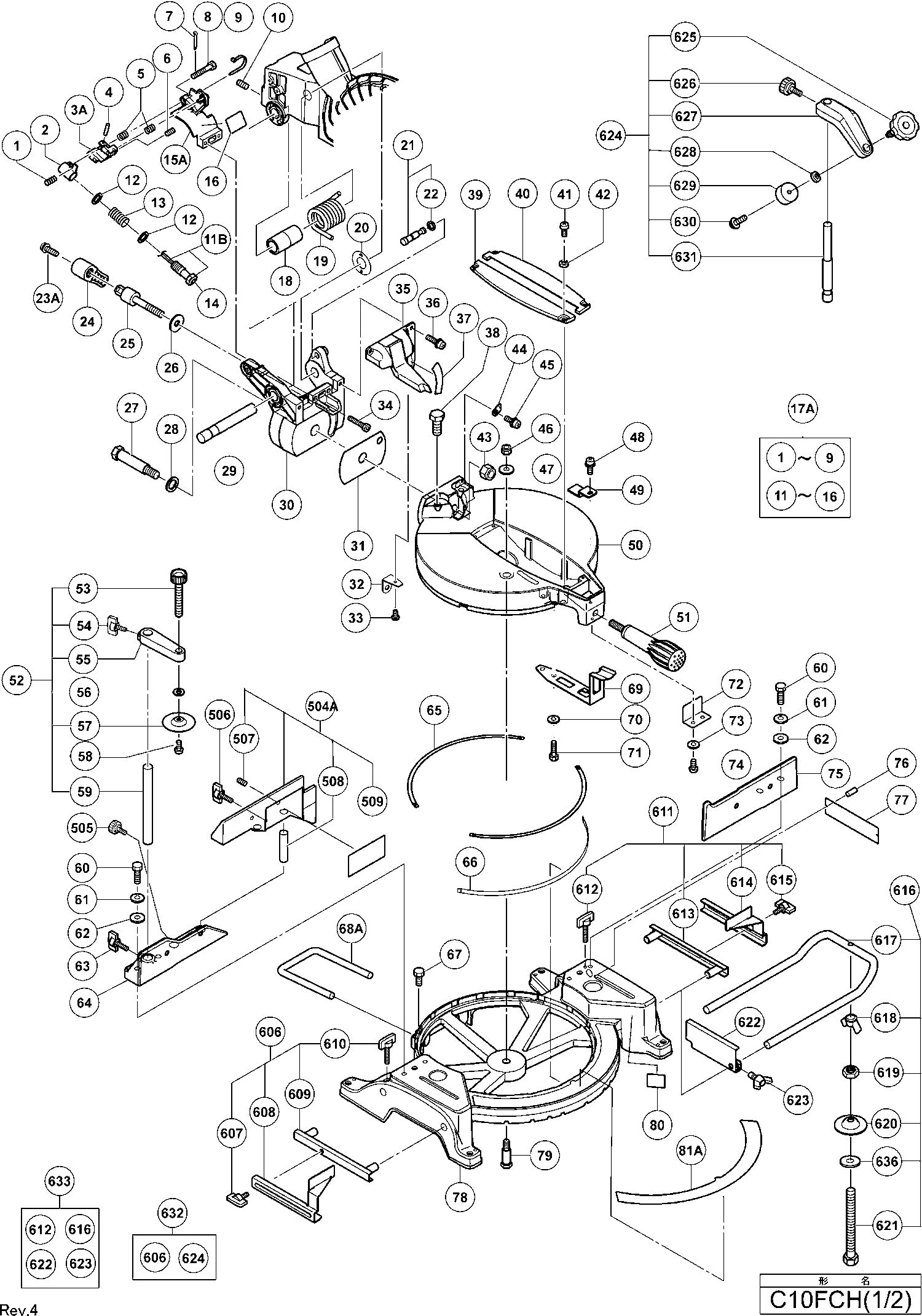 Spare parts list of model Hikoki C10FCH
