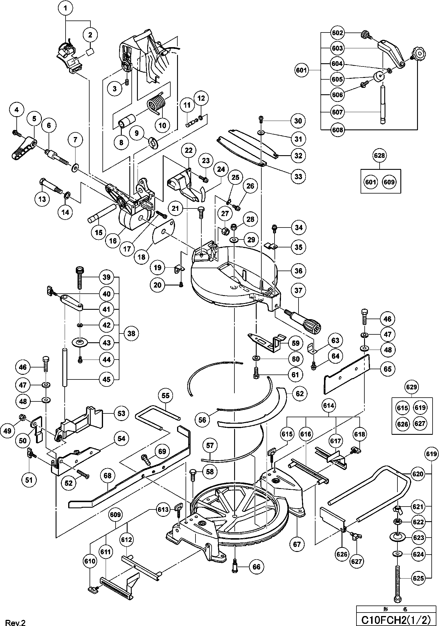 Here you will find all available parts and drawings of the 'Hikoki C10FCH2'. From here you can order all desired parts directly. Many parts must be ordered from the manufacturer, depending on the brand, this takes one to four weeks. All the information we have is on our website, we cannot advise you on what you need, for that you will need to return the machine for repair. Please note the following when ordering: