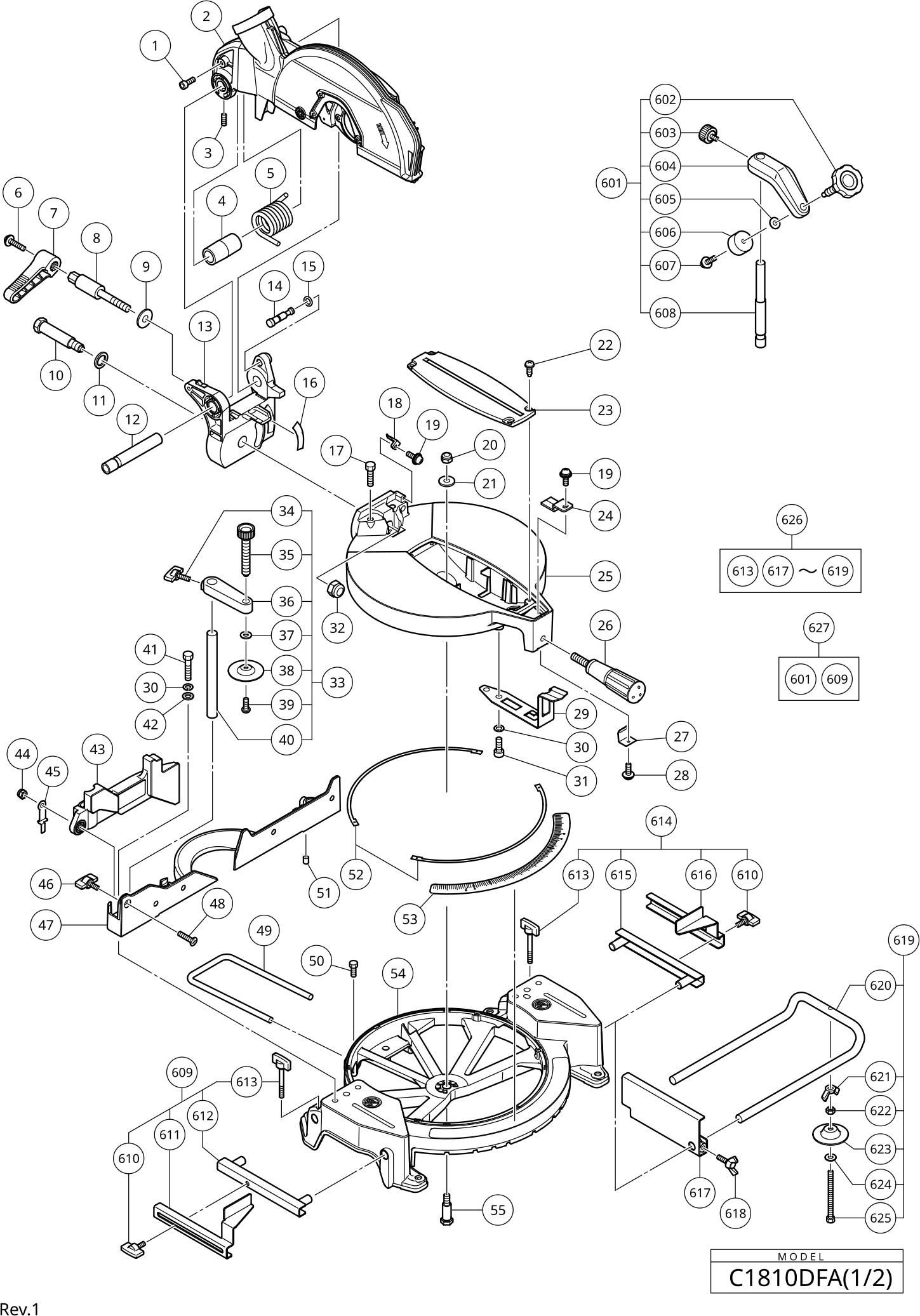 Here you will find all available parts and drawings of the 'Hikoki C1810DFA'. From here you can order all desired parts directly. Many parts must be ordered from the manufacturer, depending on the brand, this takes one to four weeks. All the information we have is on our website, we cannot advise you on what you need, for that you will need to return the machine for repair. Please note the following when ordering: