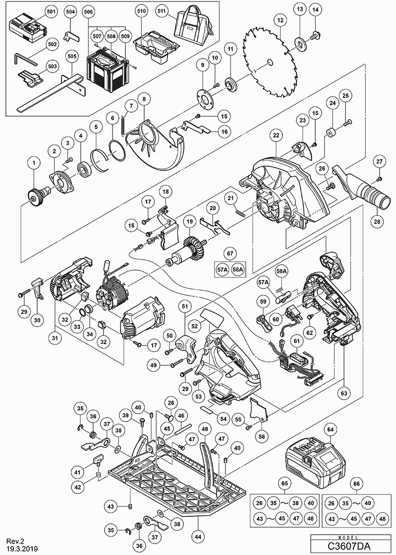 Spare parts list of model Hikoki C3607DAW2Z