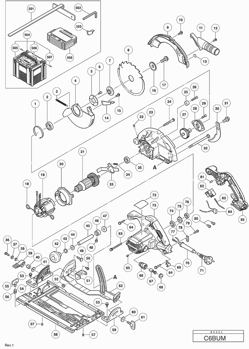 Spare parts list of model Hikoki C6BUM