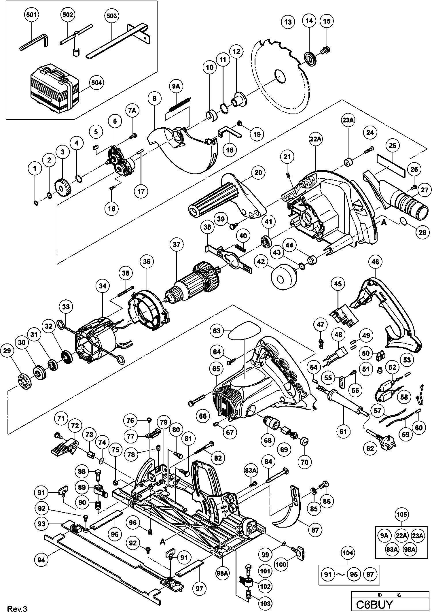 Spare parts list of model Hikoki C6BUY