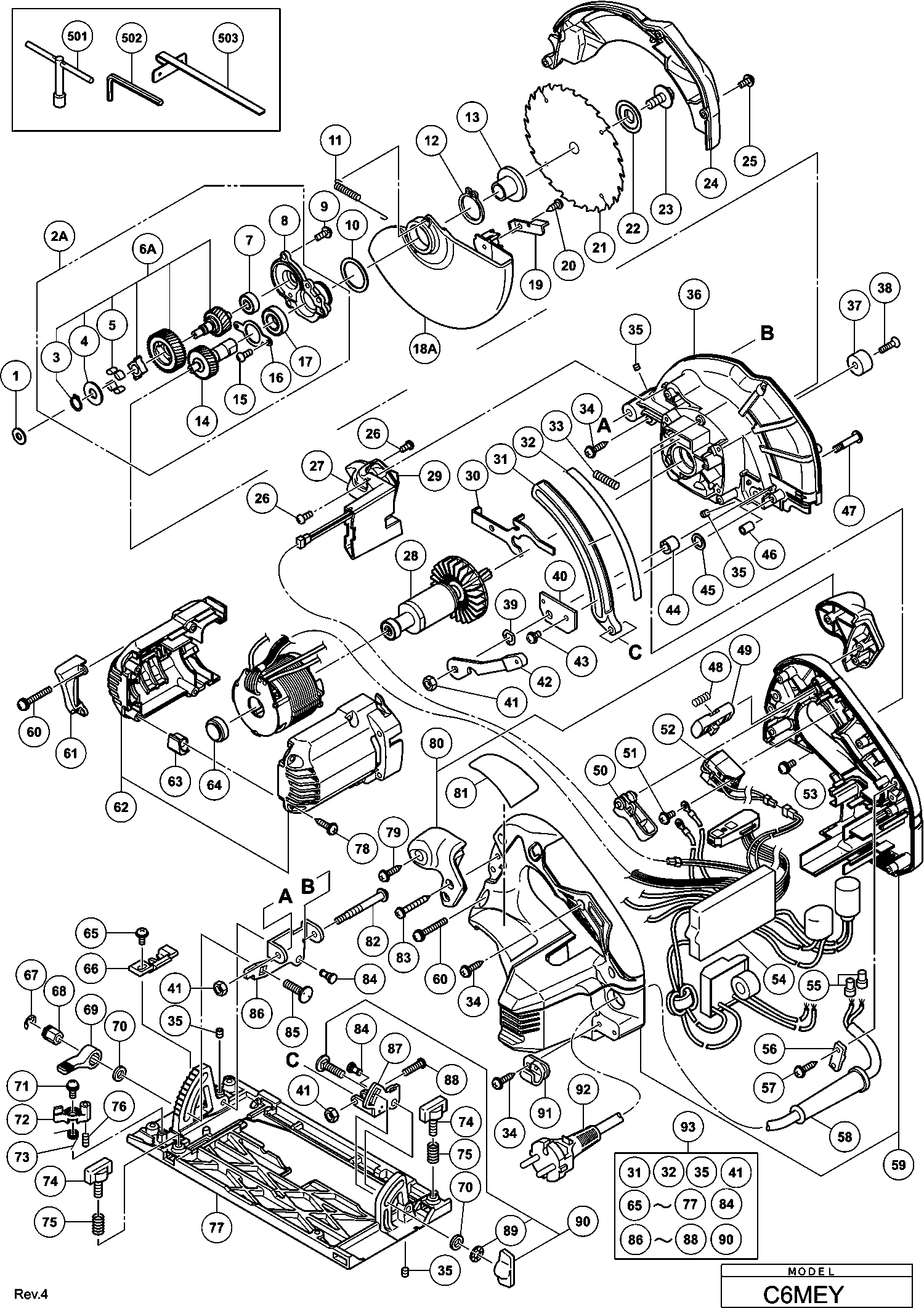 Here you will find all available parts and drawings of the 'Hikoki C6MEY'. From here you can order all desired parts directly. Many parts must be ordered from the manufacturer, depending on the brand, this takes one to four weeks. All the information we have is on our website, we cannot advise you on what you need, for that you will need to return the machine for repair. Please note the following when ordering: