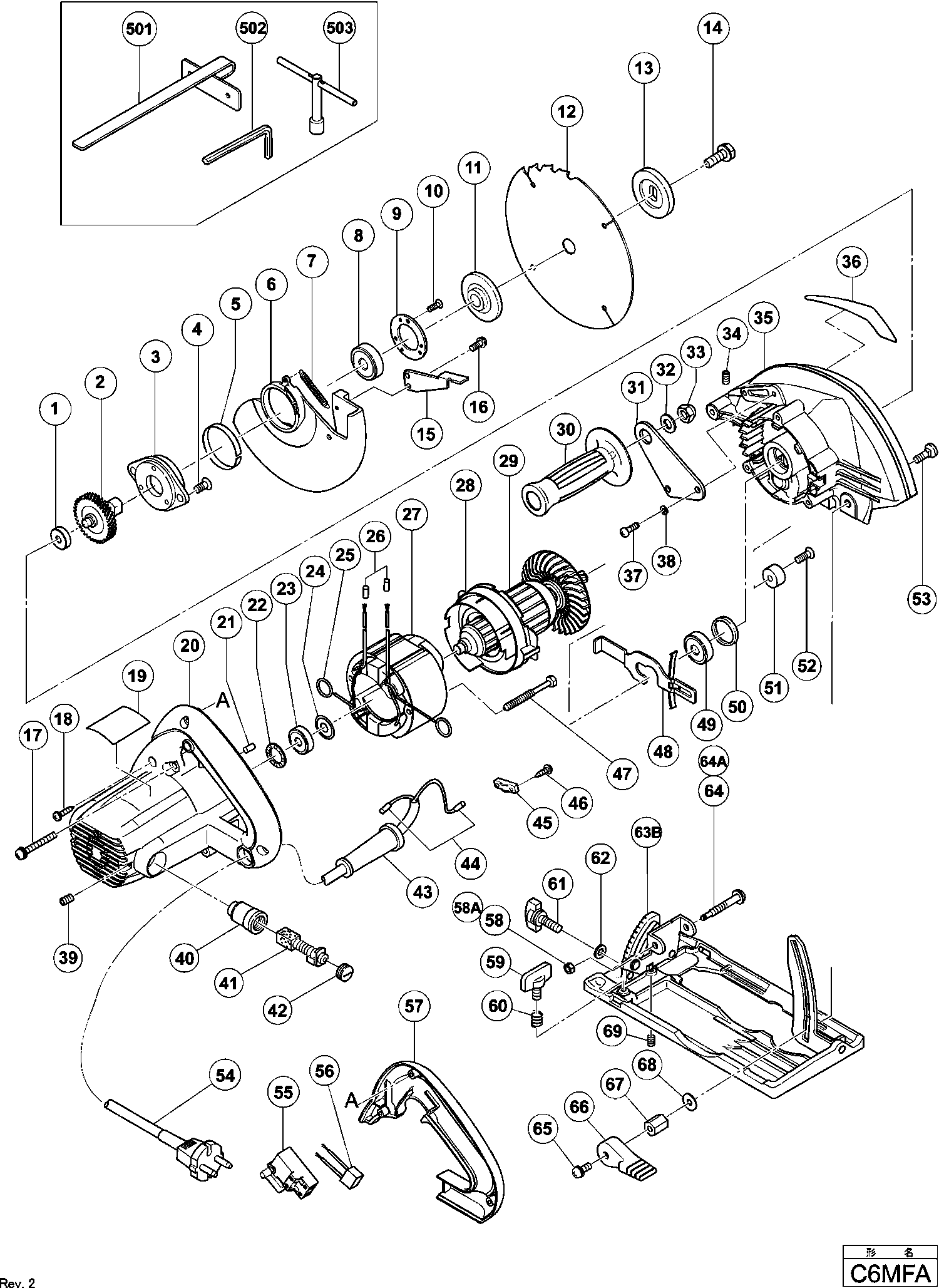 Spare parts list of model Hikoki C6MFA