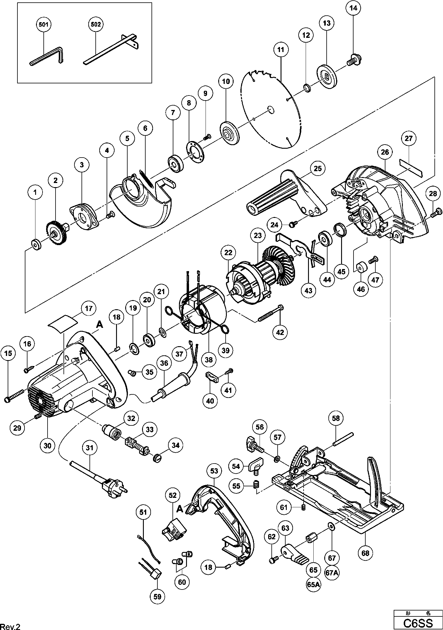 Spare parts list of model Hikoki C6SS