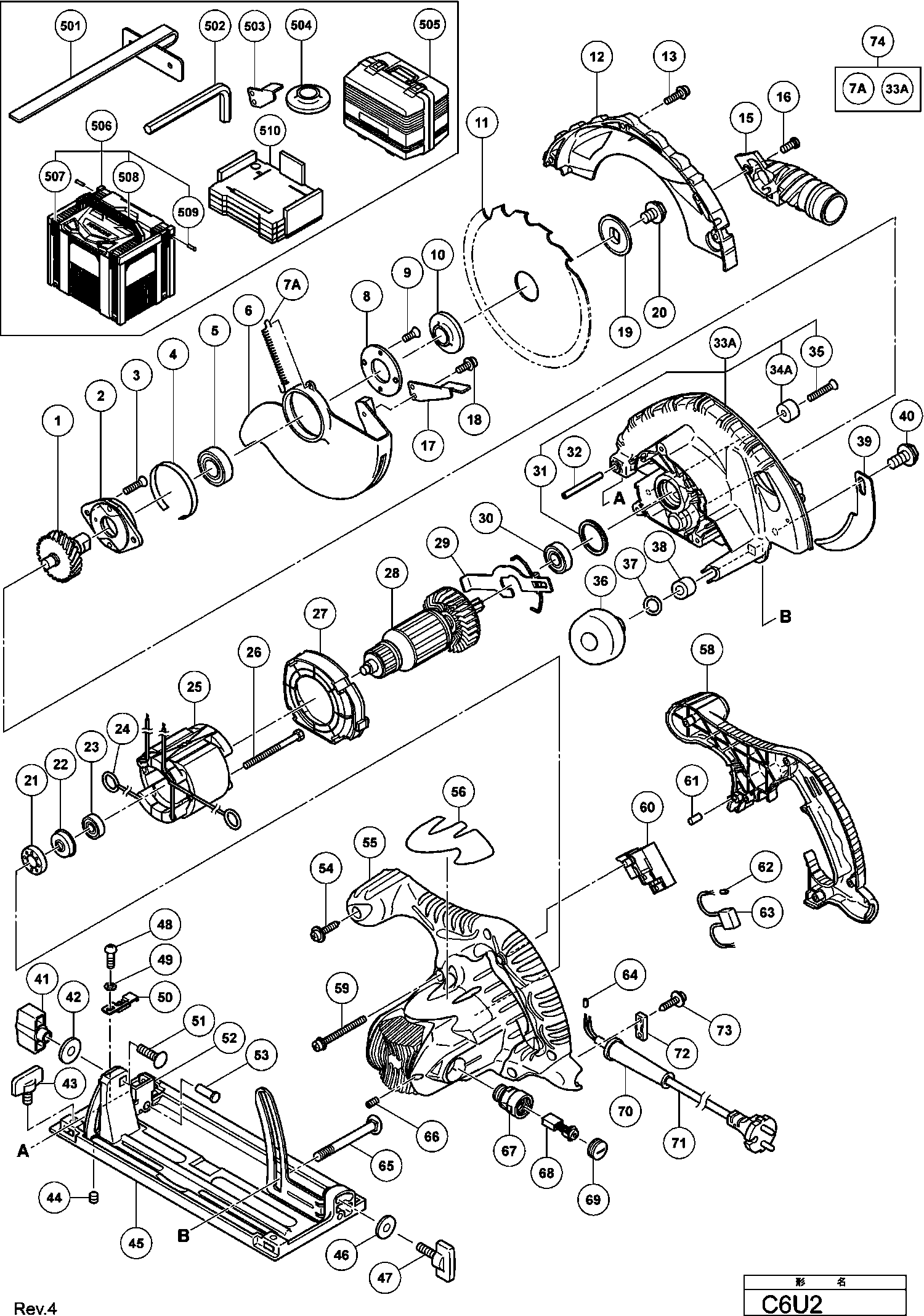 Here you will find all available parts and drawings of the 'Hikoki C6U2'. From here you can order all desired parts directly. Many parts must be ordered from the manufacturer, depending on the brand, this takes one to four weeks. All the information we have is on our website, we cannot advise you on what you need, for that you will need to return the machine for repair. Please note the following when ordering: