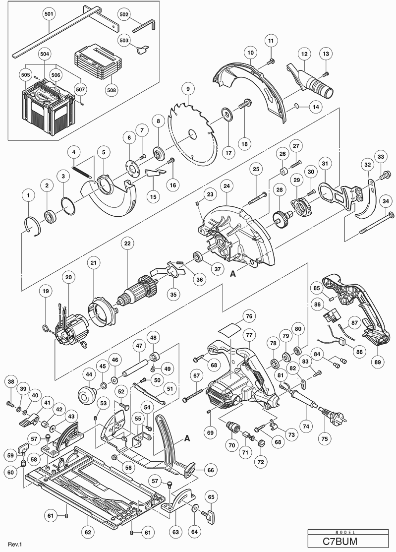 Spare parts list of model Hikoki C7BUM