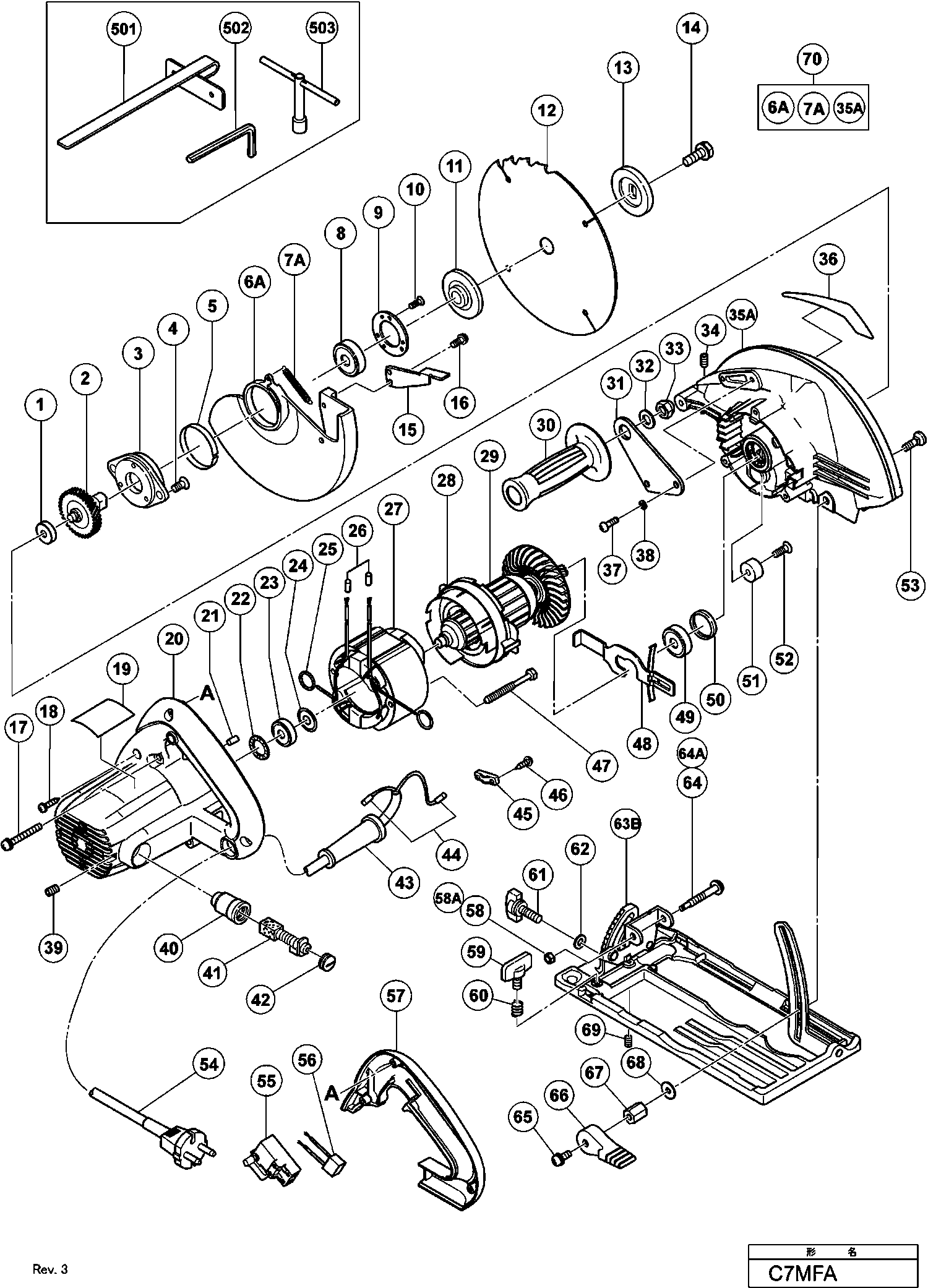 Spare parts list of model Hikoki C7MFA