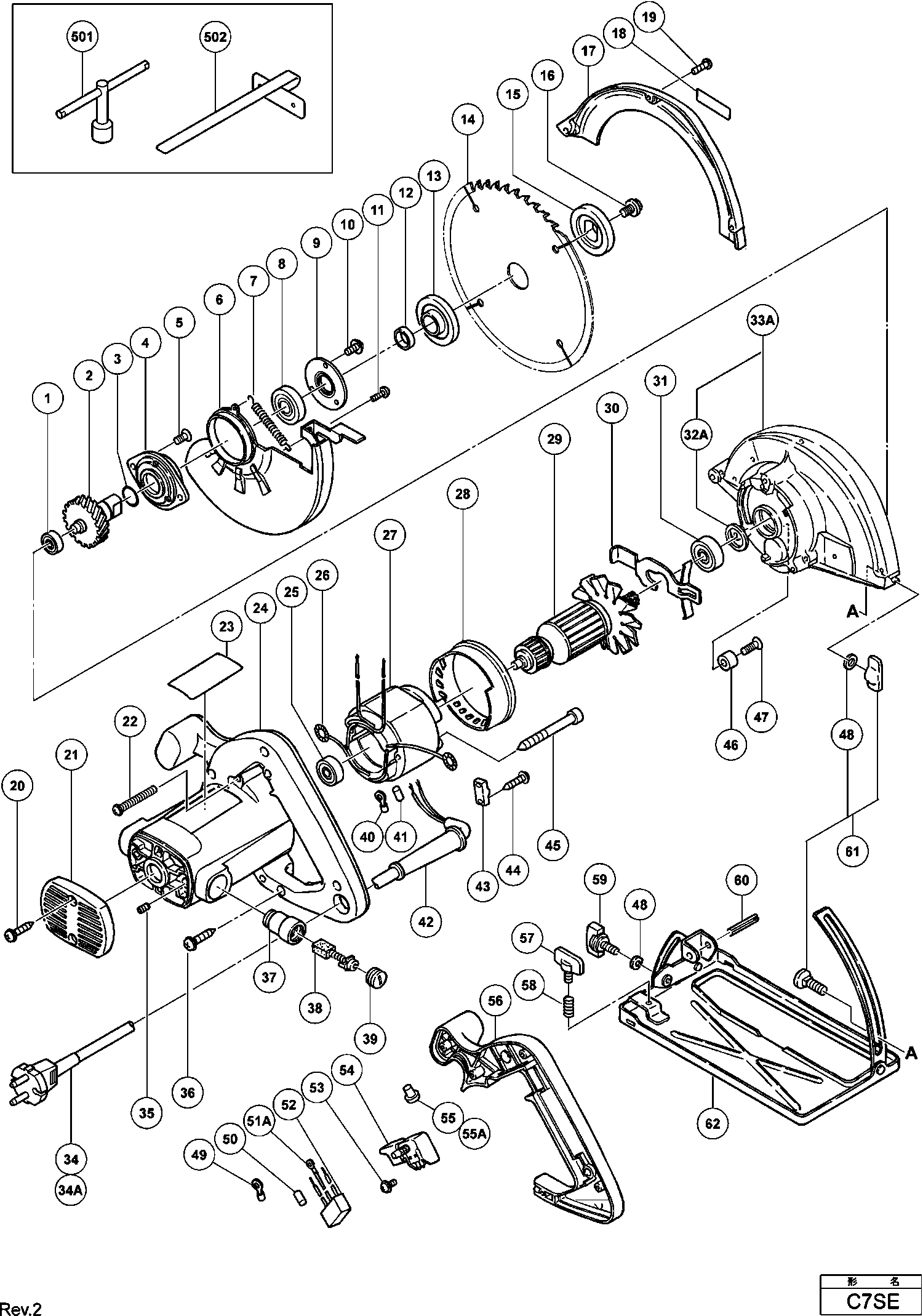 Here you will find all available parts and drawings of the 'Hikoki C7SE'. From here you can order all desired parts directly. Many parts must be ordered from the manufacturer, depending on the brand, this takes one to four weeks. All the information we have is on our website, we cannot advise you on what you need, for that you will need to return the machine for repair. Please note the following when ordering: