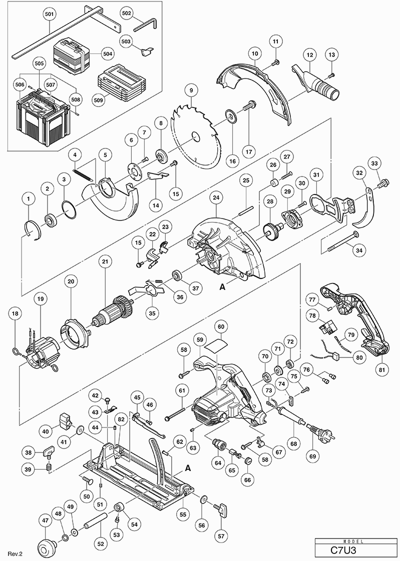 Spare parts list of model Hikoki C7U3
