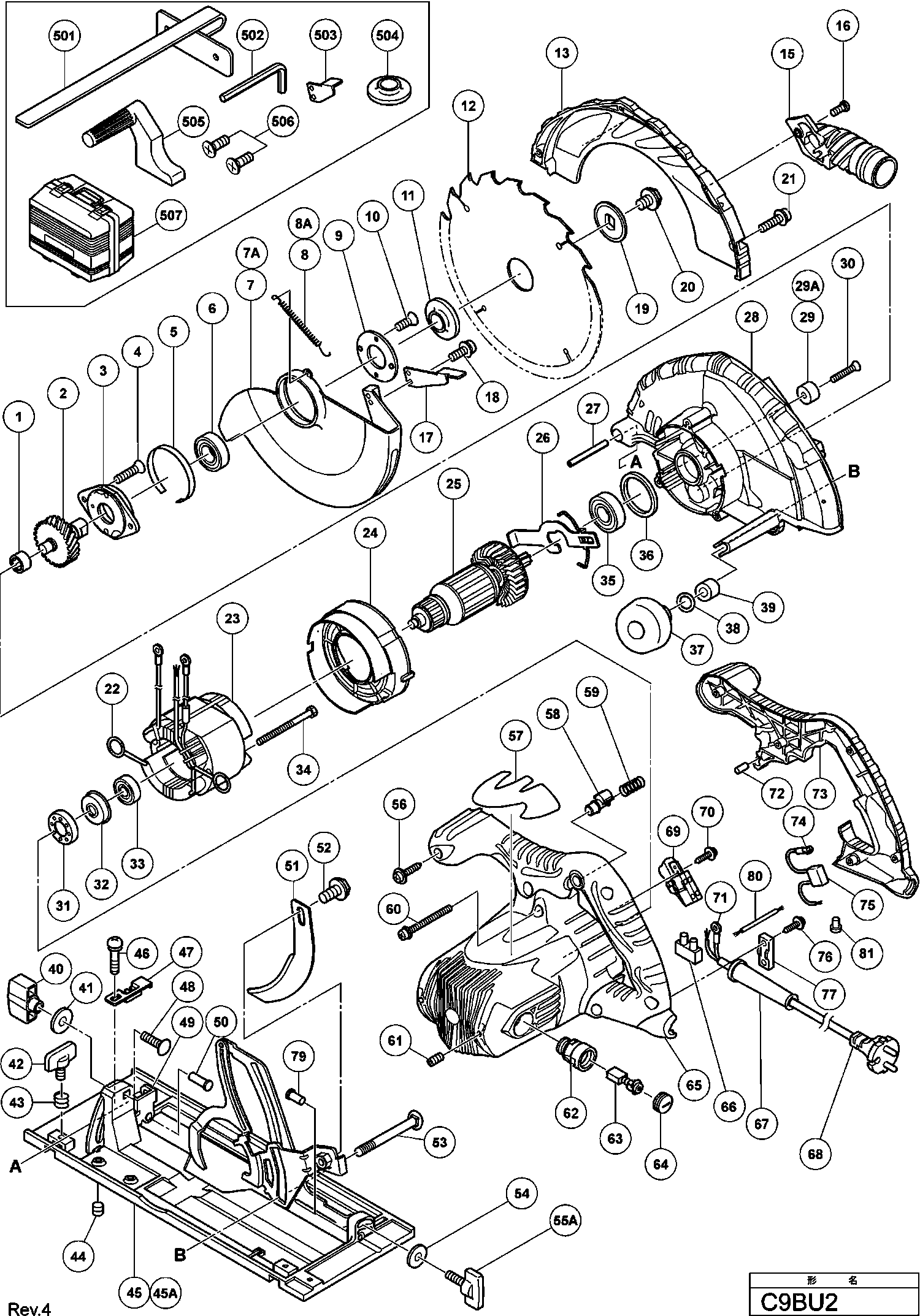 Spare parts list of model Hikoki C9BU2