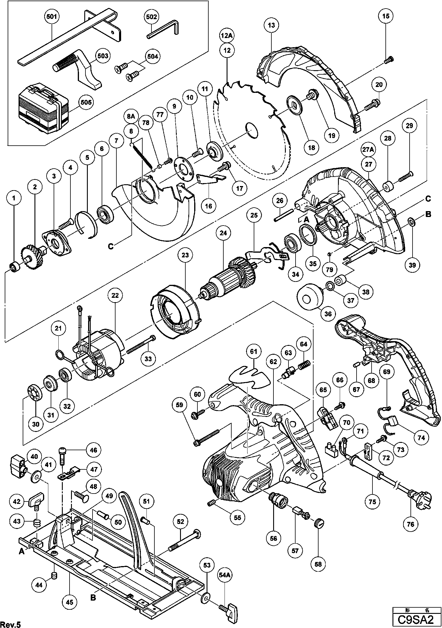 Spare parts list of model Hikoki C9SA2