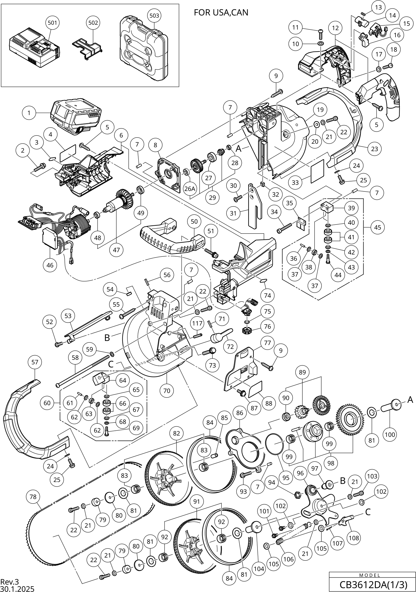 Spare parts list of model Hikoki CB3612DA