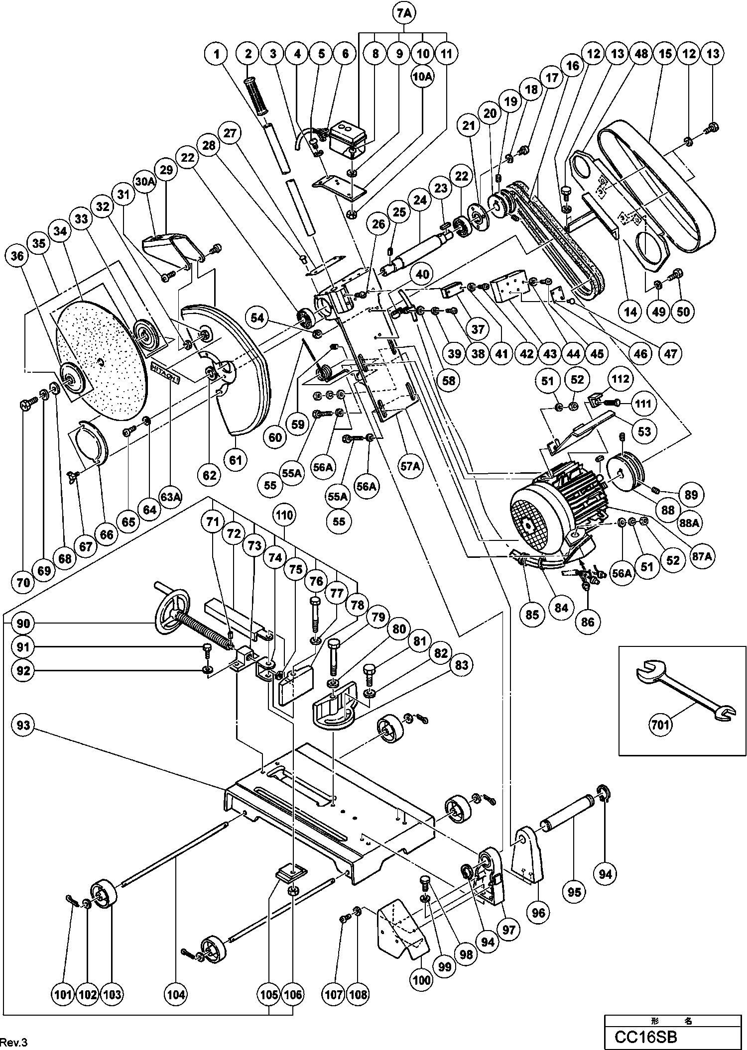 Spare parts list of model Hikoki CC16SB