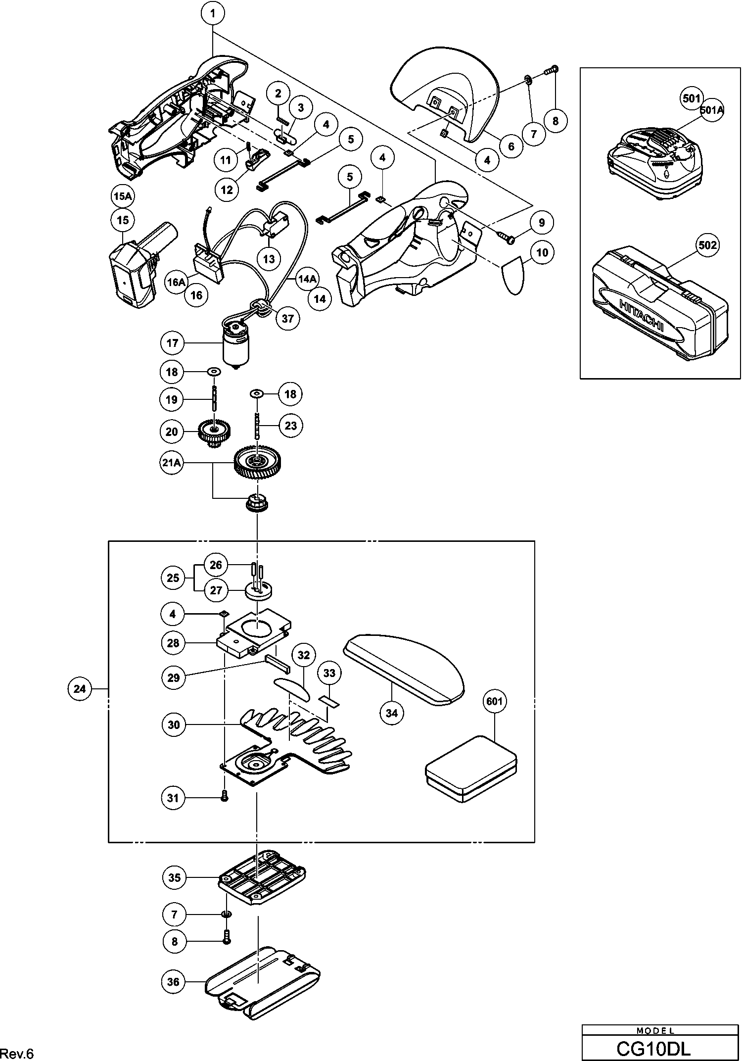 Spare parts list of model Hikoki CG10DL