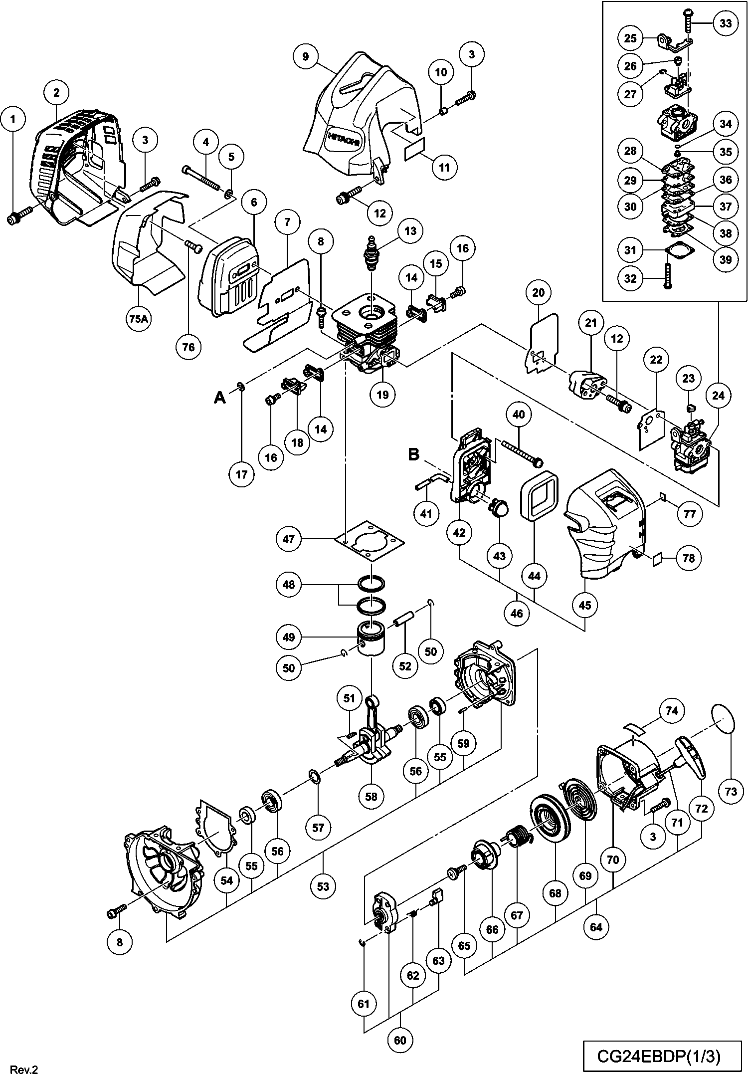 Here you will find all available parts and drawings of the 'Hikoki CG24EBDP'. From here you can order all desired parts directly. Many parts must be ordered from the manufacturer, depending on the brand, this takes one to four weeks. All the information we have is on our website, we cannot advise you on what you need, for that you will need to return the machine for repair. Please note the following when ordering: