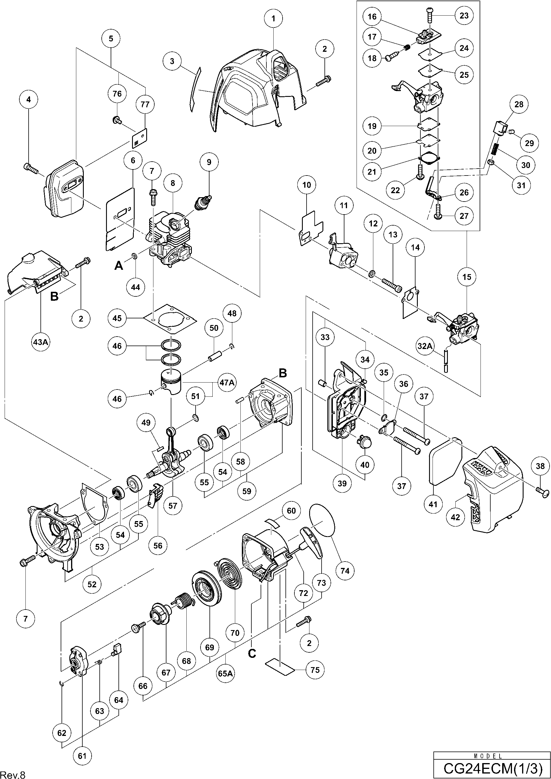Here you will find all available parts and drawings of the 'Hikoki CG24ECM'. From here you can order all desired parts directly. Many parts must be ordered from the manufacturer, depending on the brand, this takes one to four weeks. All the information we have is on our website, we cannot advise you on what you need, for that you will need to return the machine for repair. Please note the following when ordering: