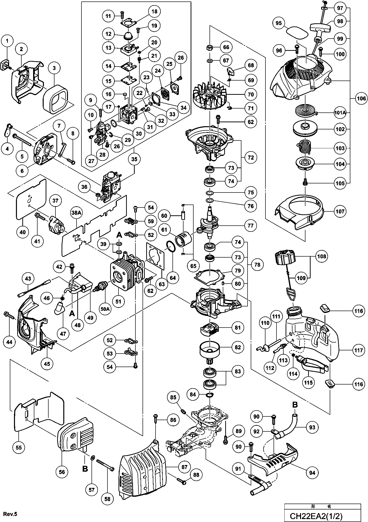 Spare parts list of model Hikoki CH22EA2
