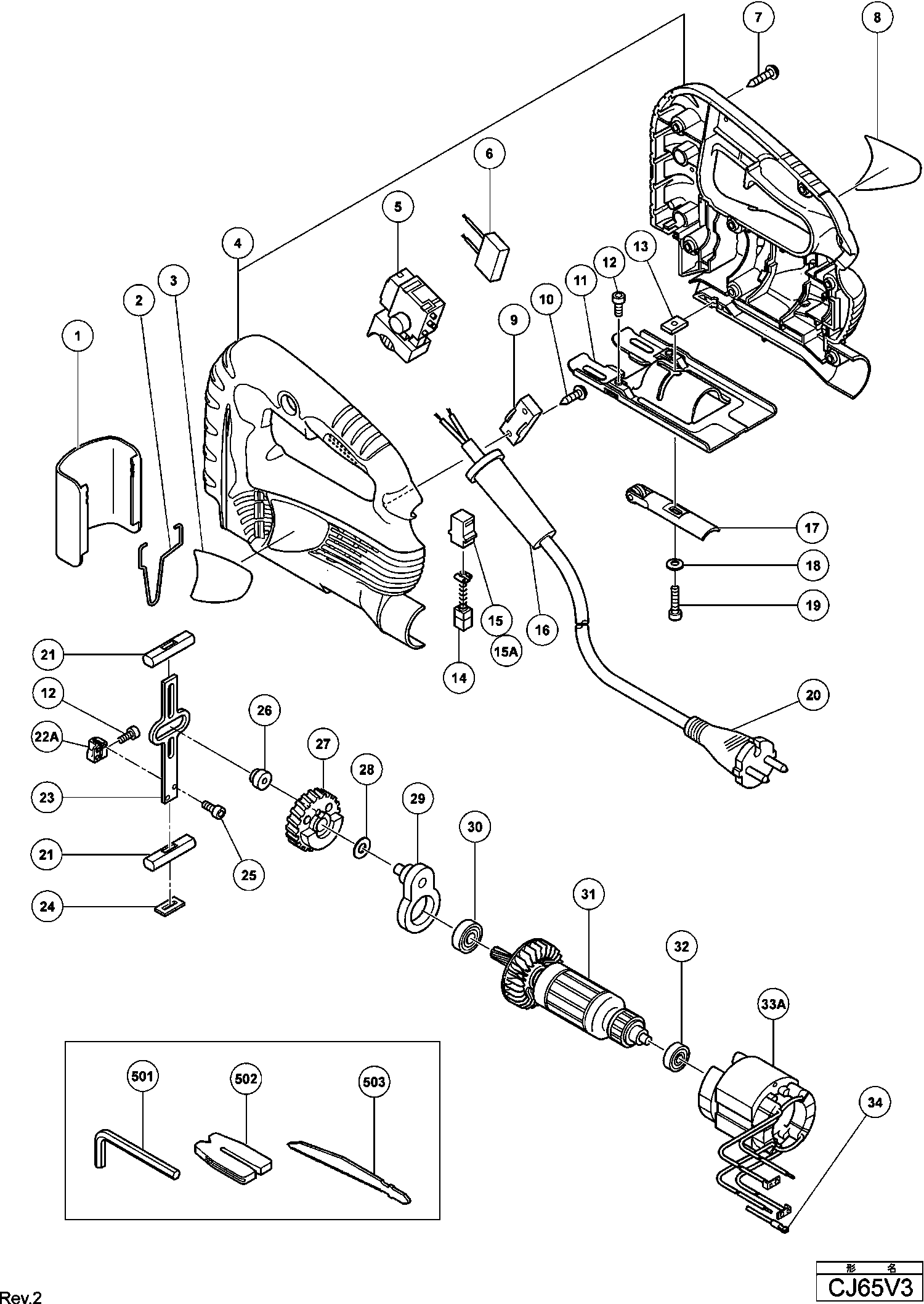Spare parts list of model Hikoki CJ65V3