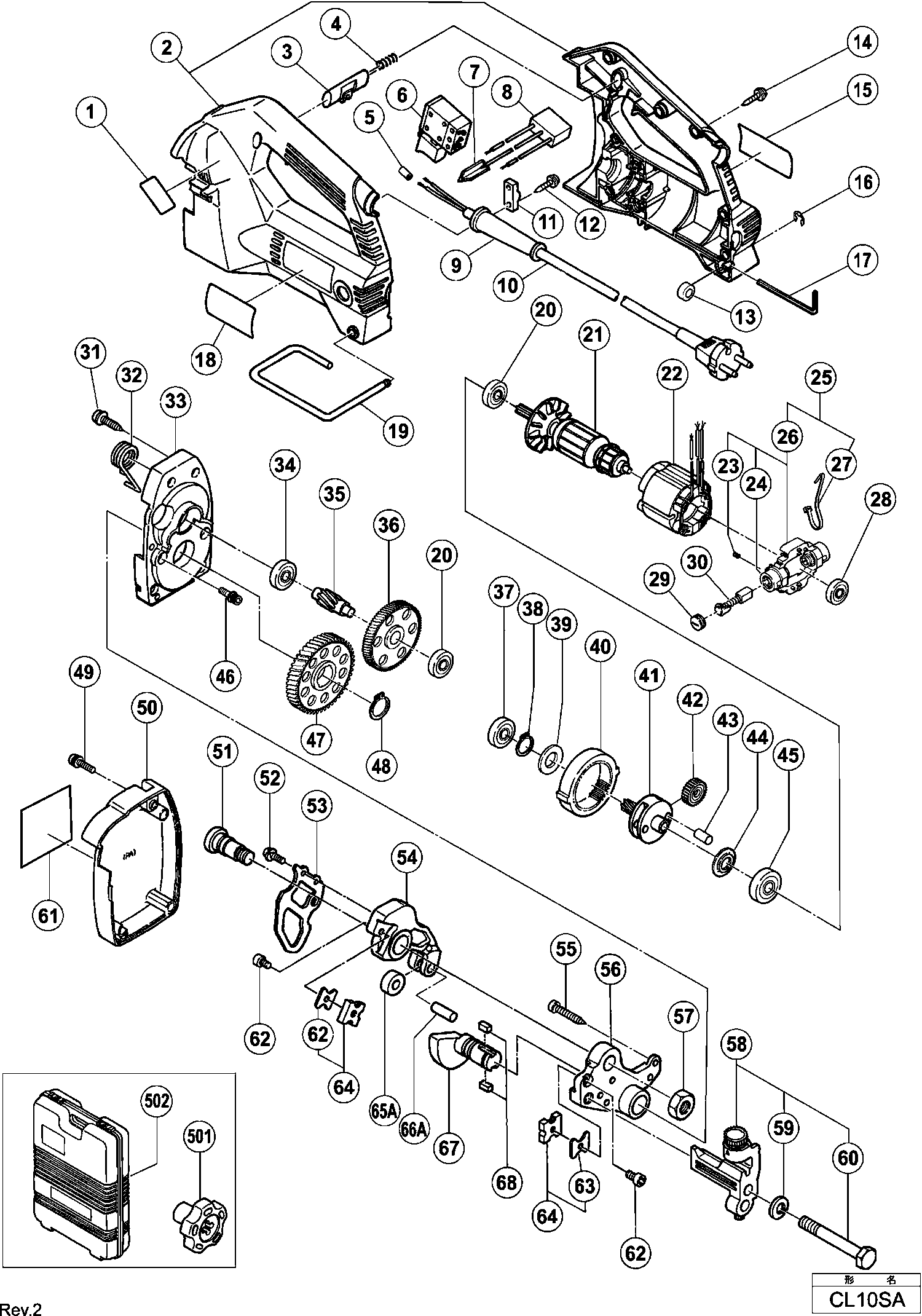 Here you will find all available parts and drawings of the 'Hikoki CL10SA'. From here you can order all desired parts directly. Many parts must be ordered from the manufacturer, depending on the brand, this takes one to four weeks. All the information we have is on our website, we cannot advise you on what you need, for that you will need to return the machine for repair. Please note the following when ordering: