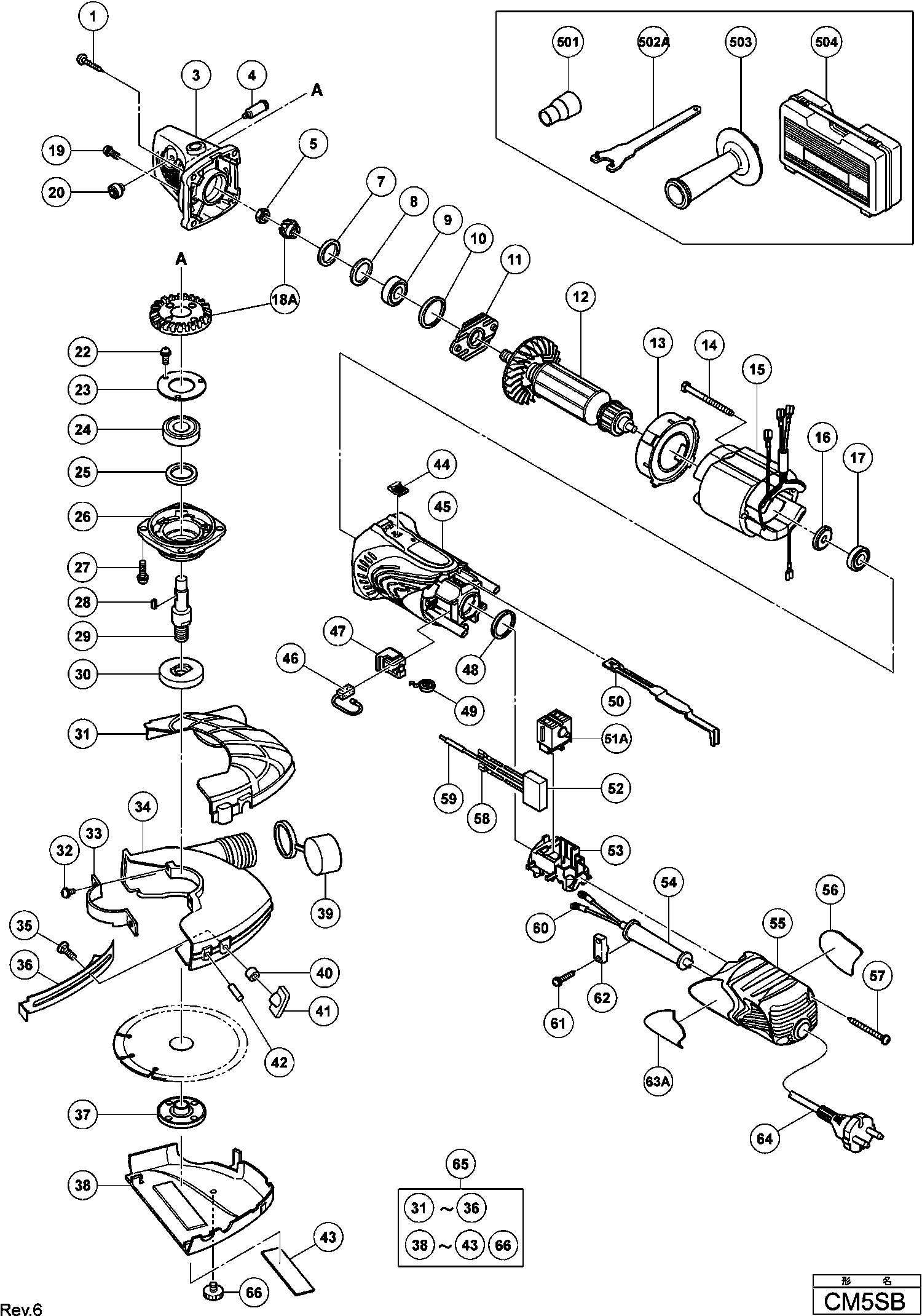 Spare parts list of model Hikoki CM5SB