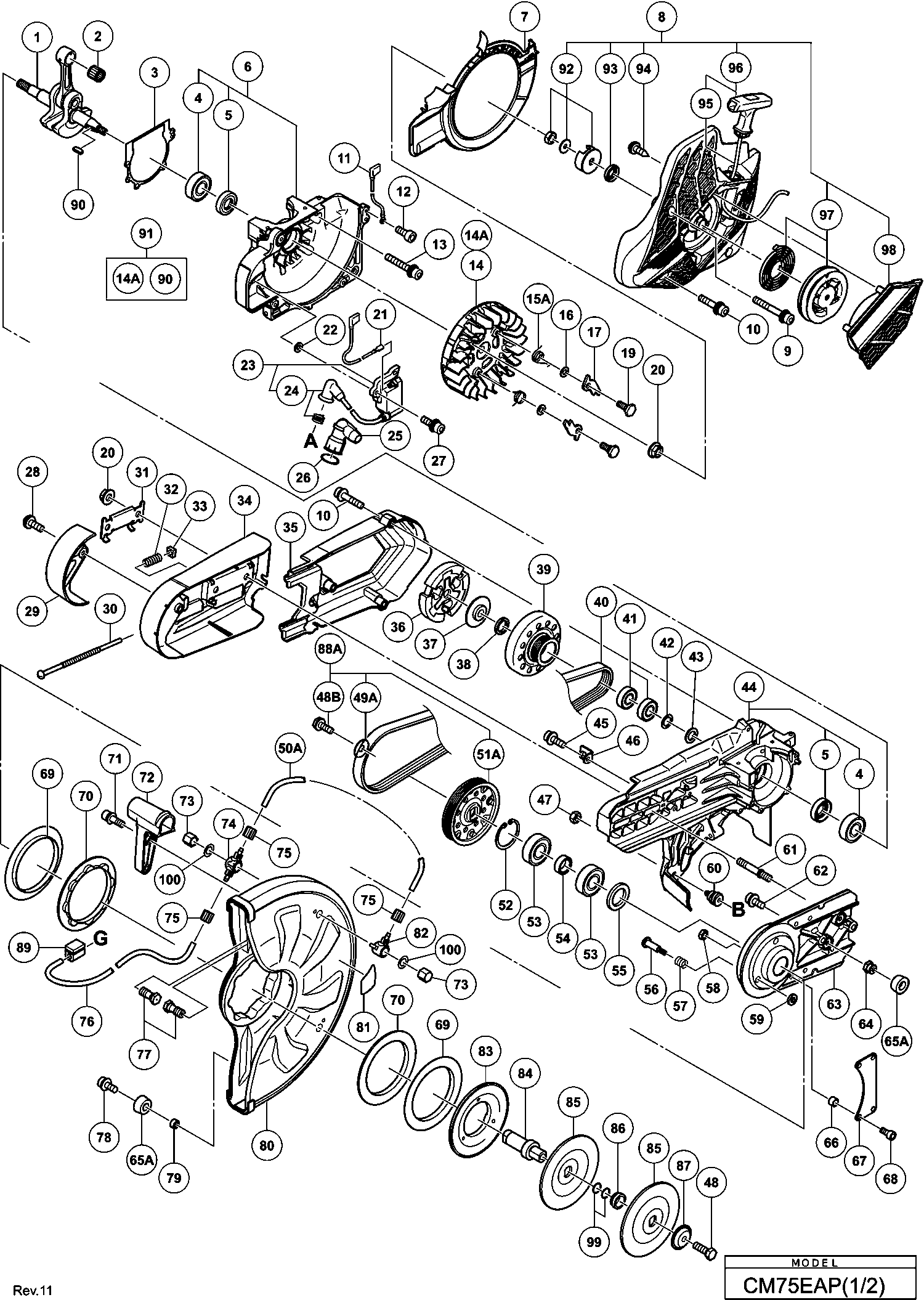 Here you will find all available parts and drawings of the 'Hikoki CM75EAP'. From here you can order all desired parts directly. Many parts must be ordered from the manufacturer, depending on the brand, this takes one to four weeks. All the information we have is on our website, we cannot advise you on what you need, for that you will need to return the machine for repair. Please note the following when ordering: