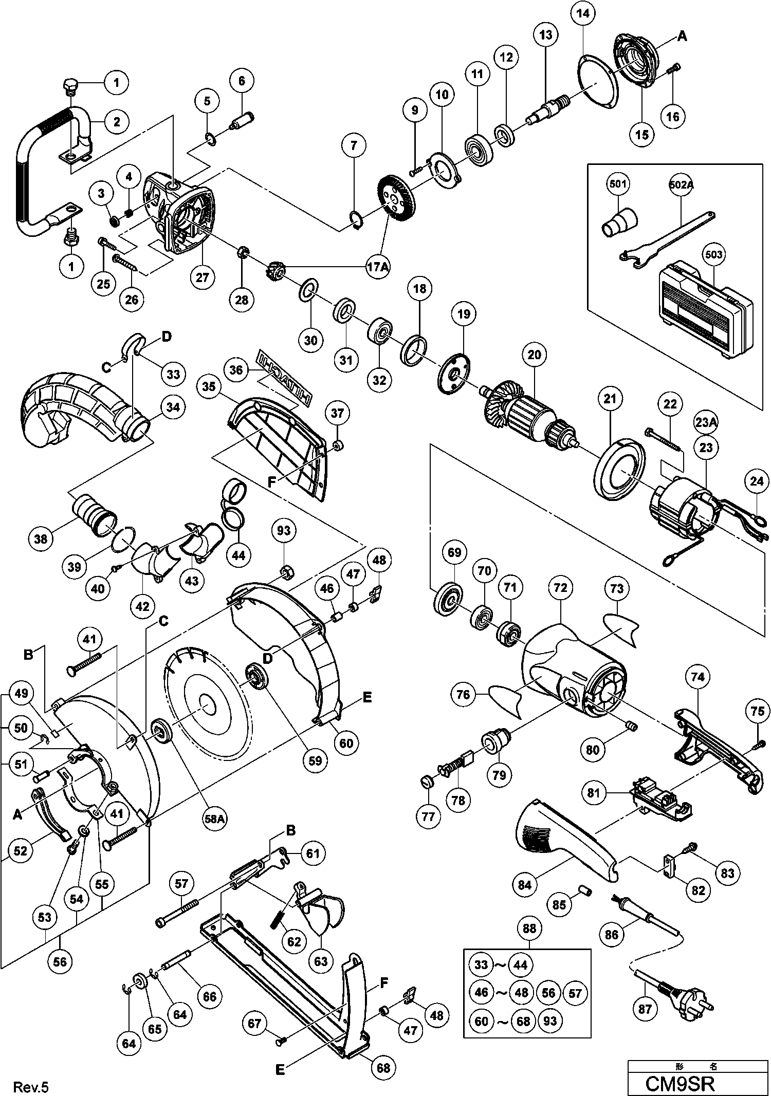Spare parts list of model Hikoki CM9SR