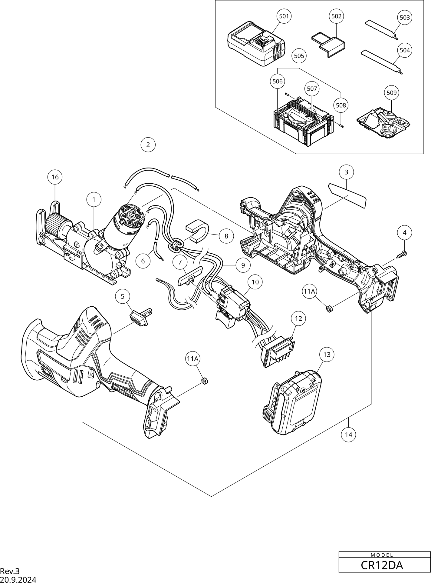 Spare parts list of model Hikoki CR12DA