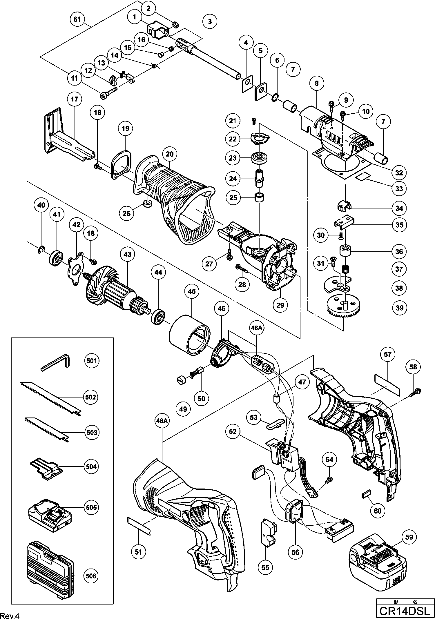 Here you will find all available parts and drawings of the 'Hikoki CR14DSL'. From here you can order all desired parts directly. Many parts must be ordered from the manufacturer, depending on the brand, this takes one to four weeks. All the information we have is on our website, we cannot advise you on what you need, for that you will need to return the machine for repair. Please note the following when ordering: