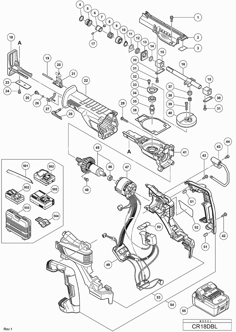 Spare parts list of model Hikoki CR18DBL