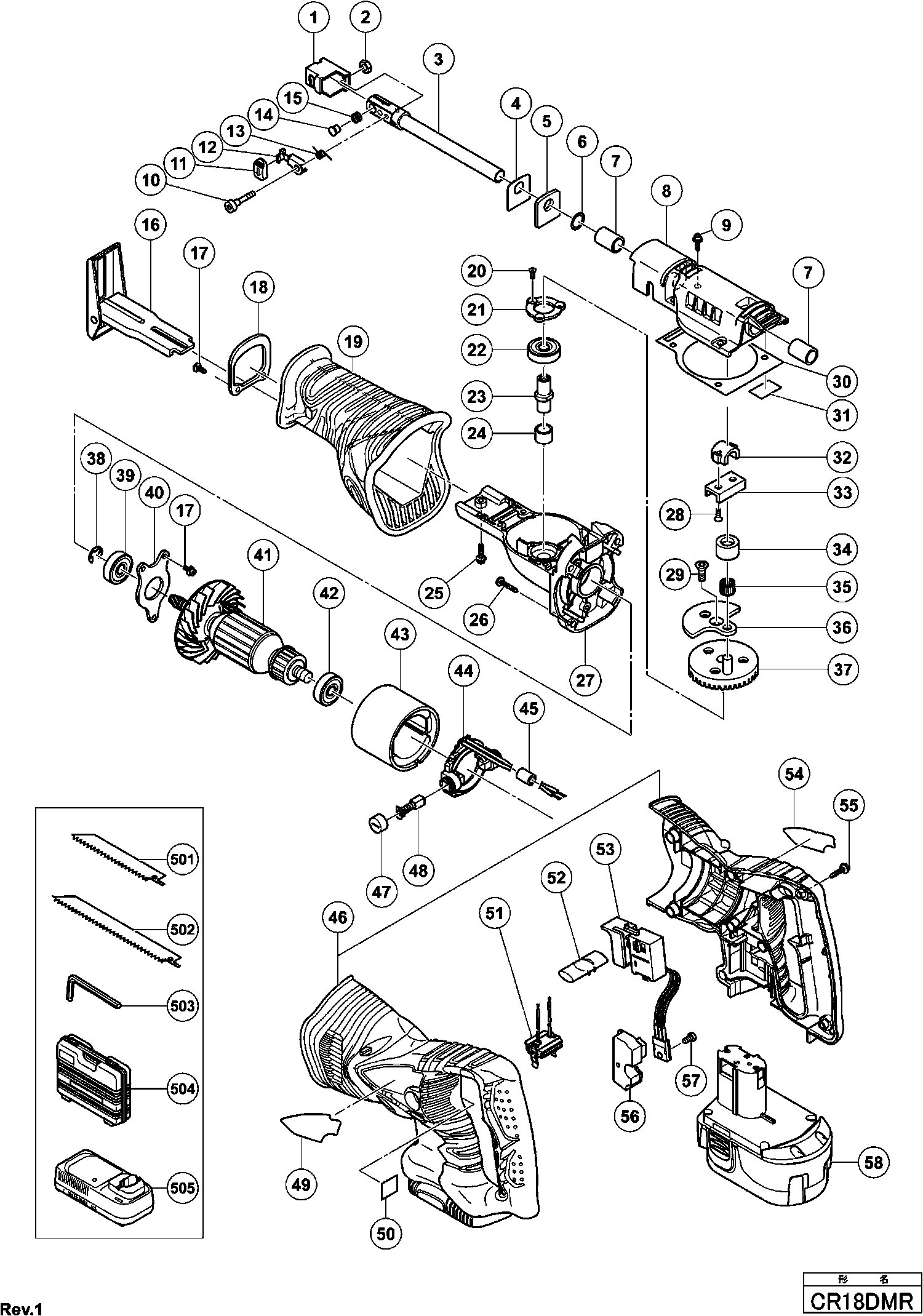 Here you will find all available parts and drawings of the 'Hikoki CR18DMR'. From here you can order all desired parts directly. Many parts must be ordered from the manufacturer, depending on the brand, this takes one to four weeks. All the information we have is on our website, we cannot advise you on what you need, for that you will need to return the machine for repair. Please note the following when ordering: