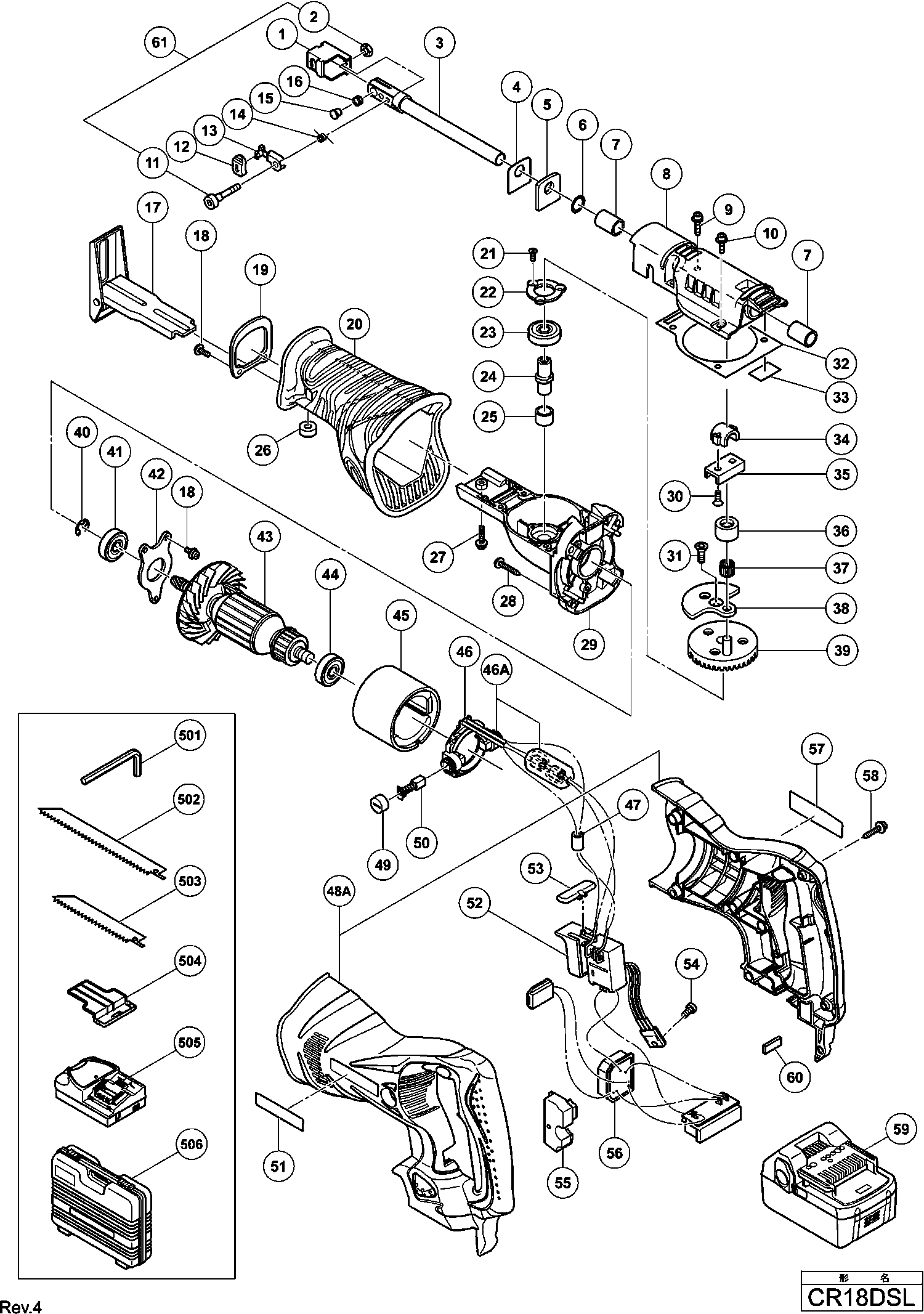 Here you will find all available parts and drawings of the 'Hikoki CR18DSL'. From here you can order all desired parts directly. Many parts must be ordered from the manufacturer, depending on the brand, this takes one to four weeks. All the information we have is on our website, we cannot advise you on what you need, for that you will need to return the machine for repair. Please note the following when ordering: