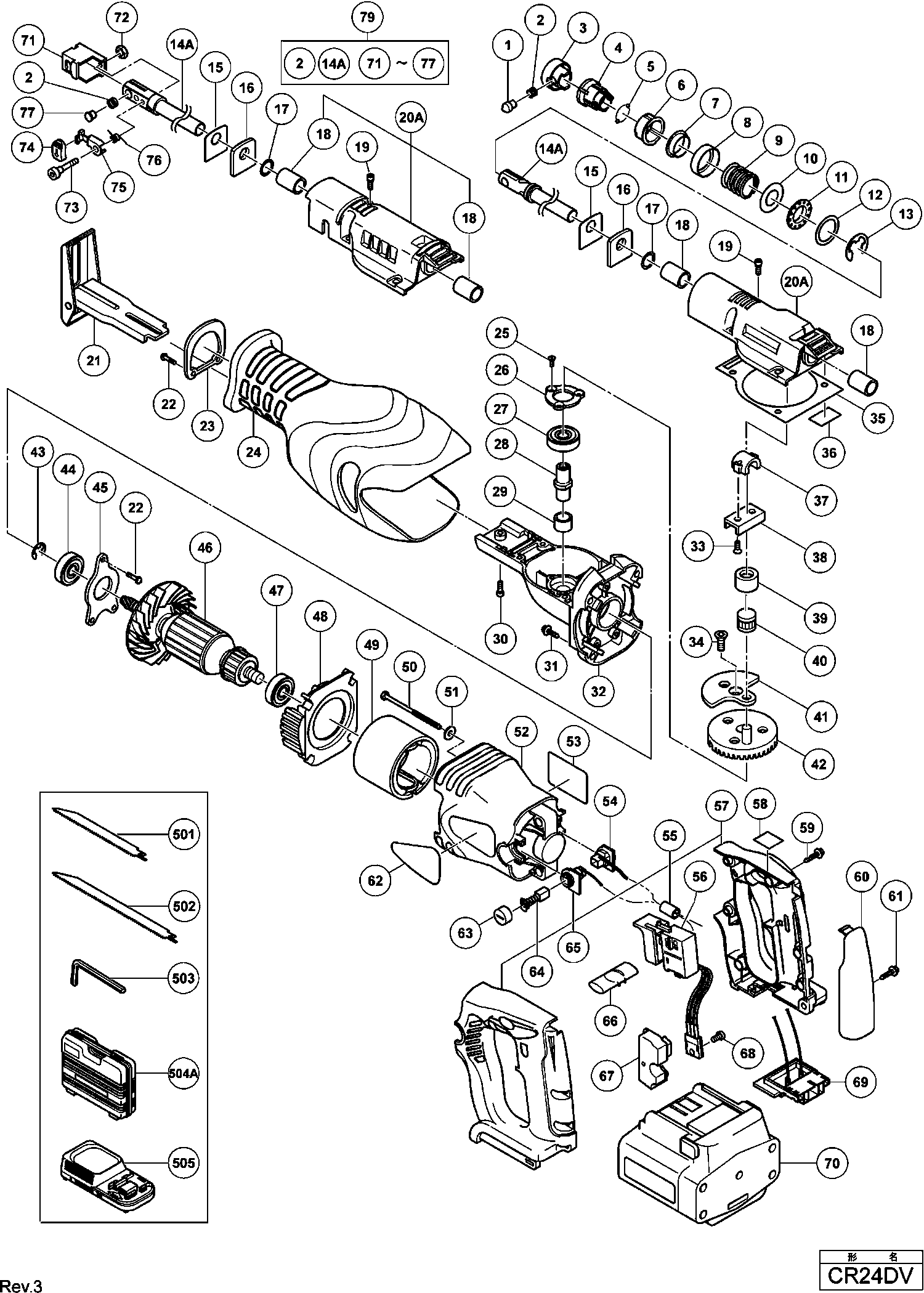 Here you will find all available parts and drawings of the 'Hikoki CR24DV'. From here you can order all desired parts directly. Many parts must be ordered from the manufacturer, depending on the brand, this takes one to four weeks. All the information we have is on our website, we cannot advise you on what you need, for that you will need to return the machine for repair. Please note the following when ordering: