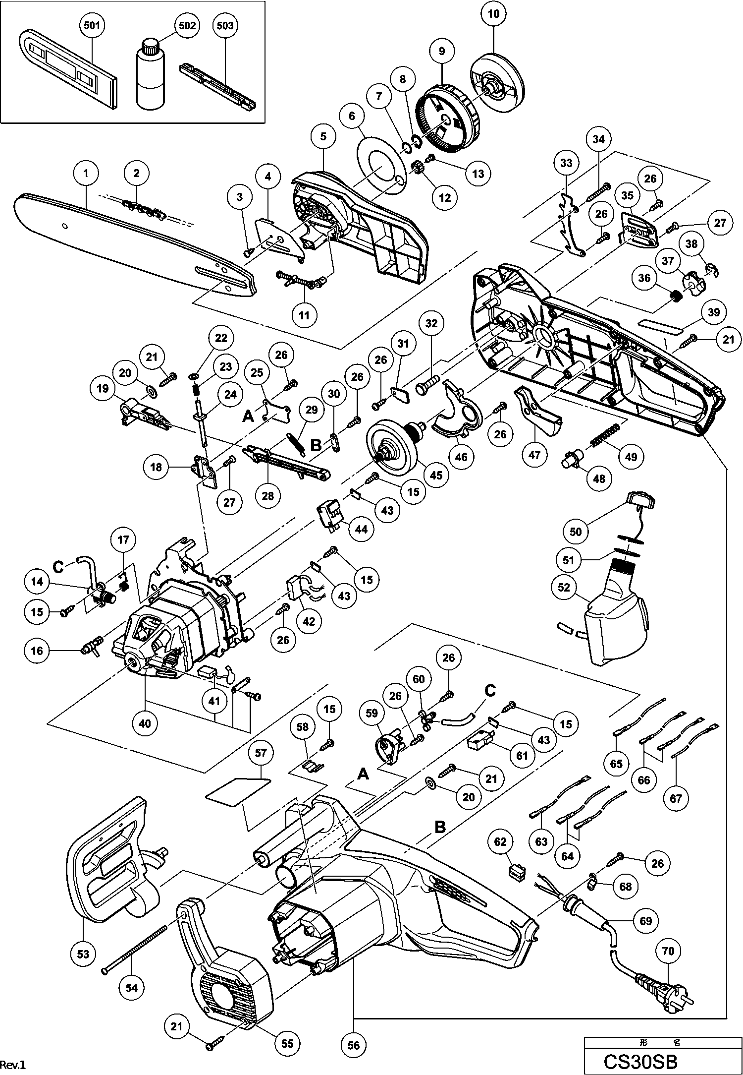 Here you will find all available parts and drawings of the 'Hikoki CS30SB'. From here you can order all desired parts directly. Many parts must be ordered from the manufacturer, depending on the brand, this takes one to four weeks. All the information we have is on our website, we cannot advise you on what you need, for that you will need to return the machine for repair. Please note the following when ordering:
