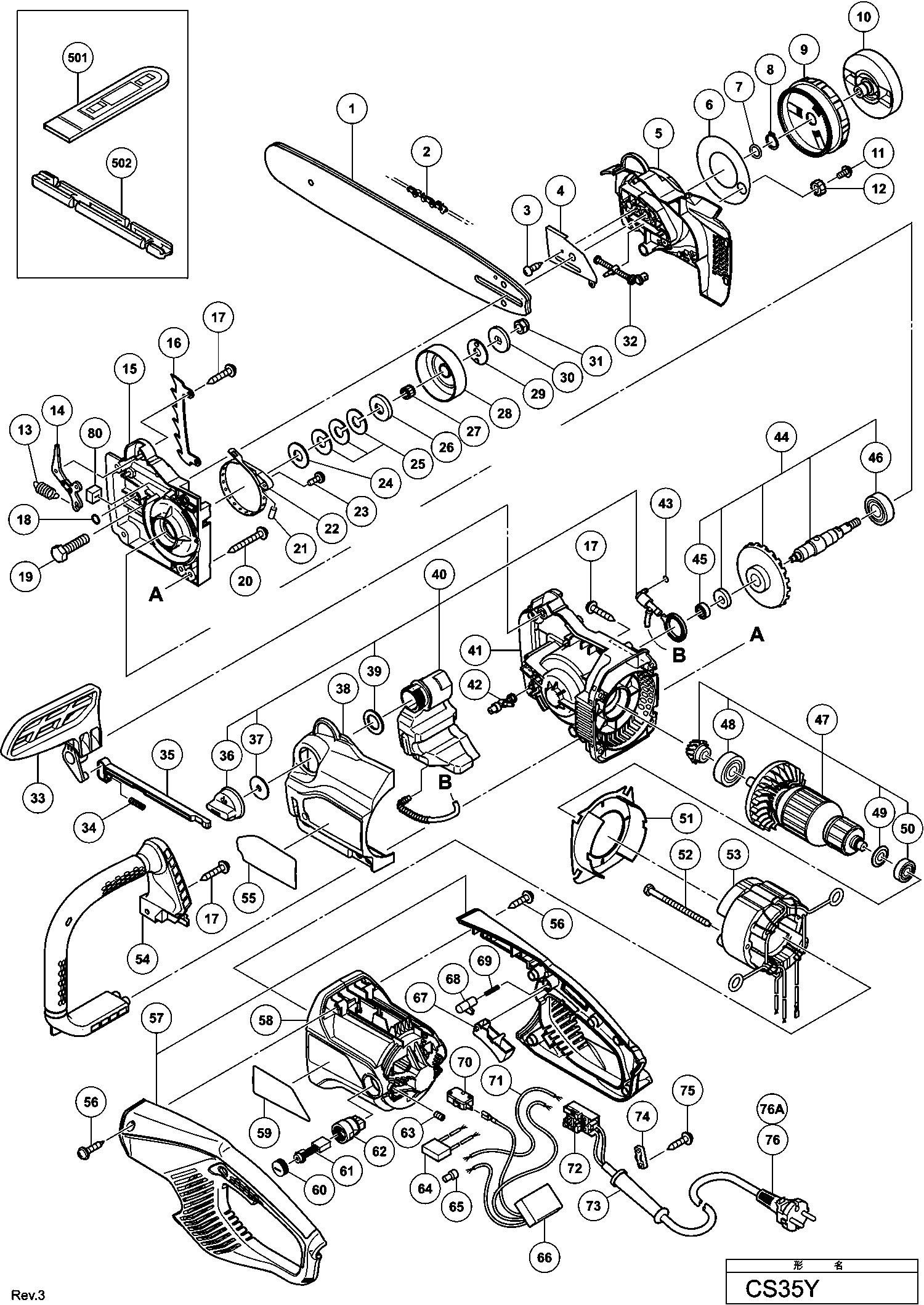 Here you will find all available parts and drawings of the 'Hikoki CS35Y'. From here you can order all desired parts directly. Many parts must be ordered from the manufacturer, depending on the brand, this takes one to four weeks. All the information we have is on our website, we cannot advise you on what you need, for that you will need to return the machine for repair. Please note the following when ordering: