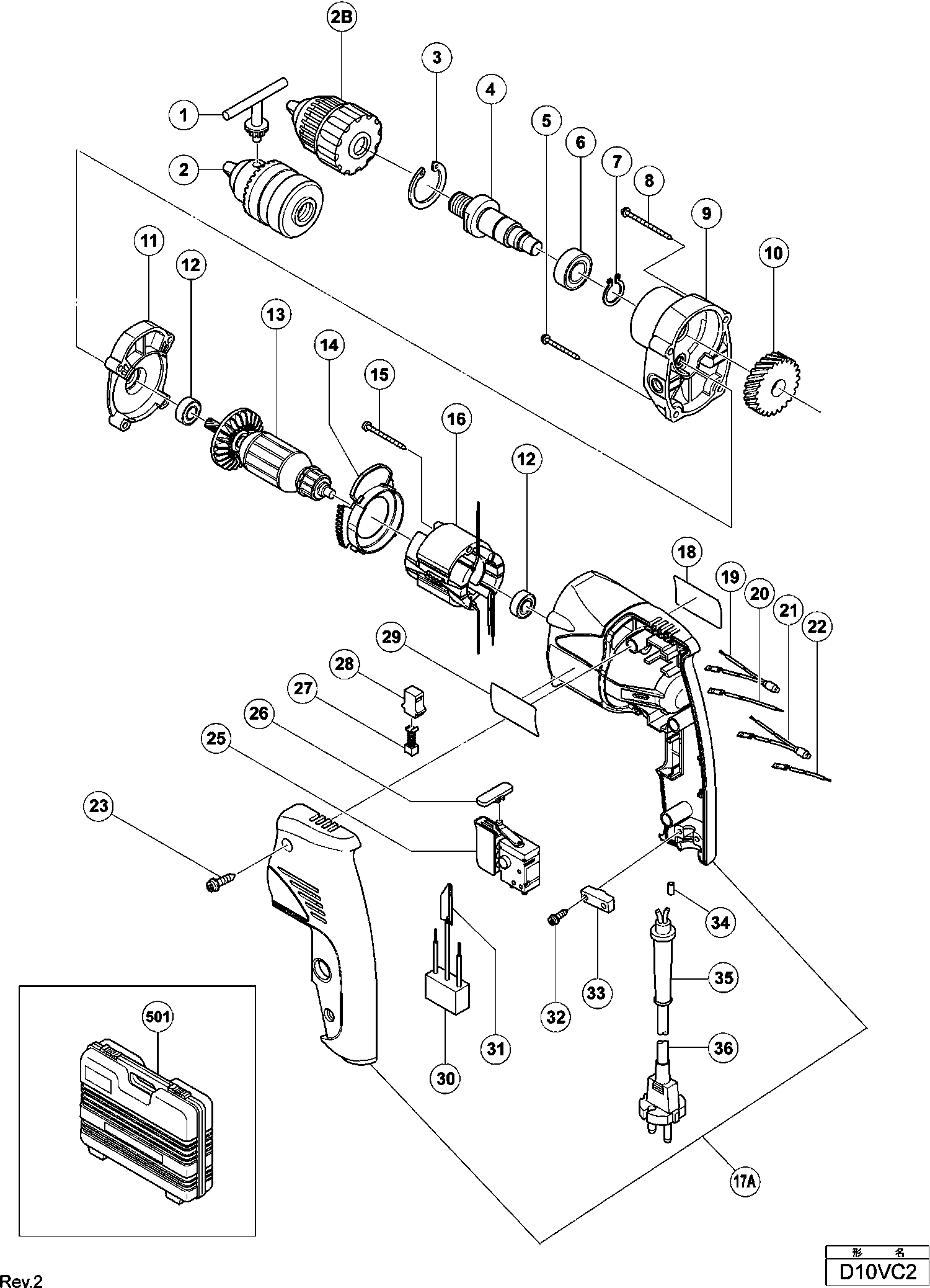 Spare parts list of model Hikoki D10VC2