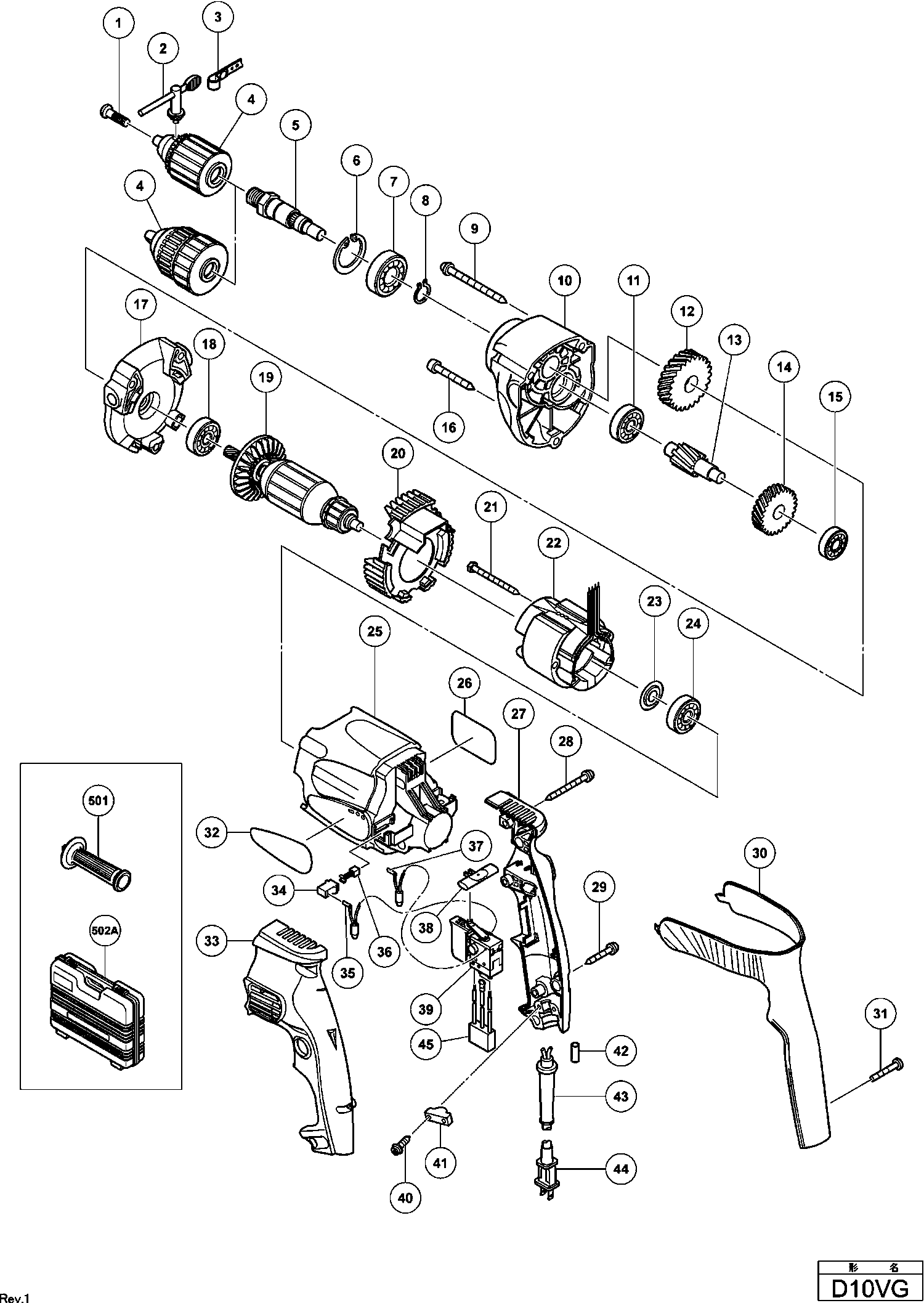 Here you will find all available parts and drawings of the 'Hikoki D10VG'. From here you can order all desired parts directly. Many parts must be ordered from the manufacturer, depending on the brand, this takes one to four weeks. All the information we have is on our website, we cannot advise you on what you need, for that you will need to return the machine for repair. Please note the following when ordering: