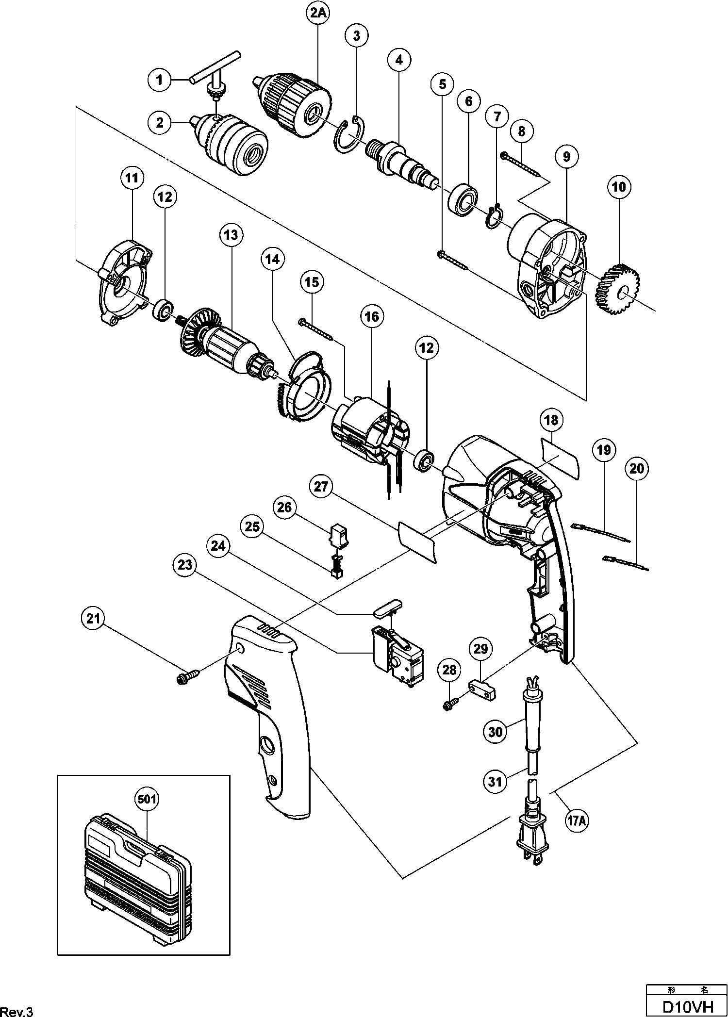 Here you will find all available parts and drawings of the 'Hikoki D10VH'. From here you can order all desired parts directly. Many parts must be ordered from the manufacturer, depending on the brand, this takes one to four weeks. All the information we have is on our website, we cannot advise you on what you need, for that you will need to return the machine for repair. Please note the following when ordering: