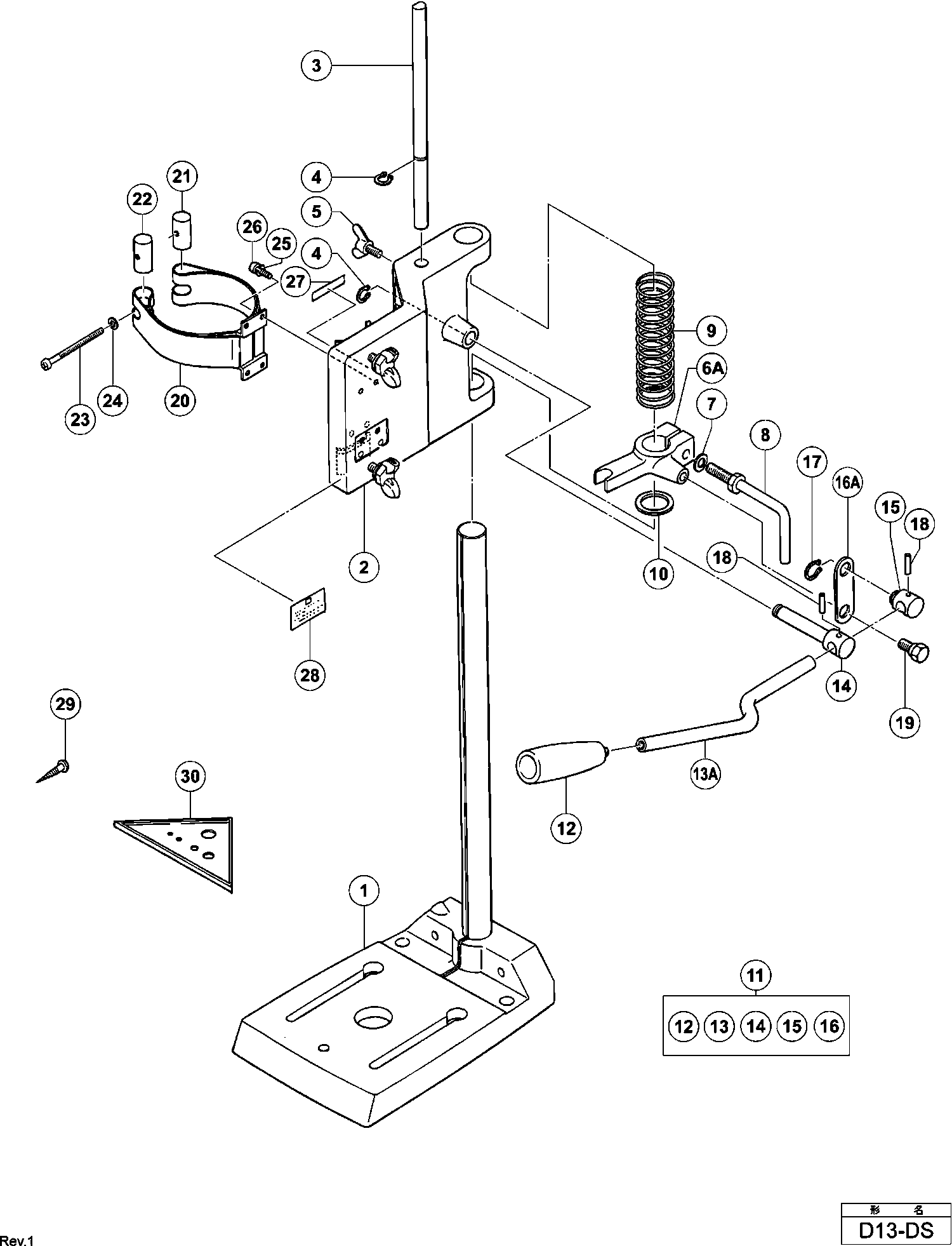 Spare parts list of model Hikoki D13-DS