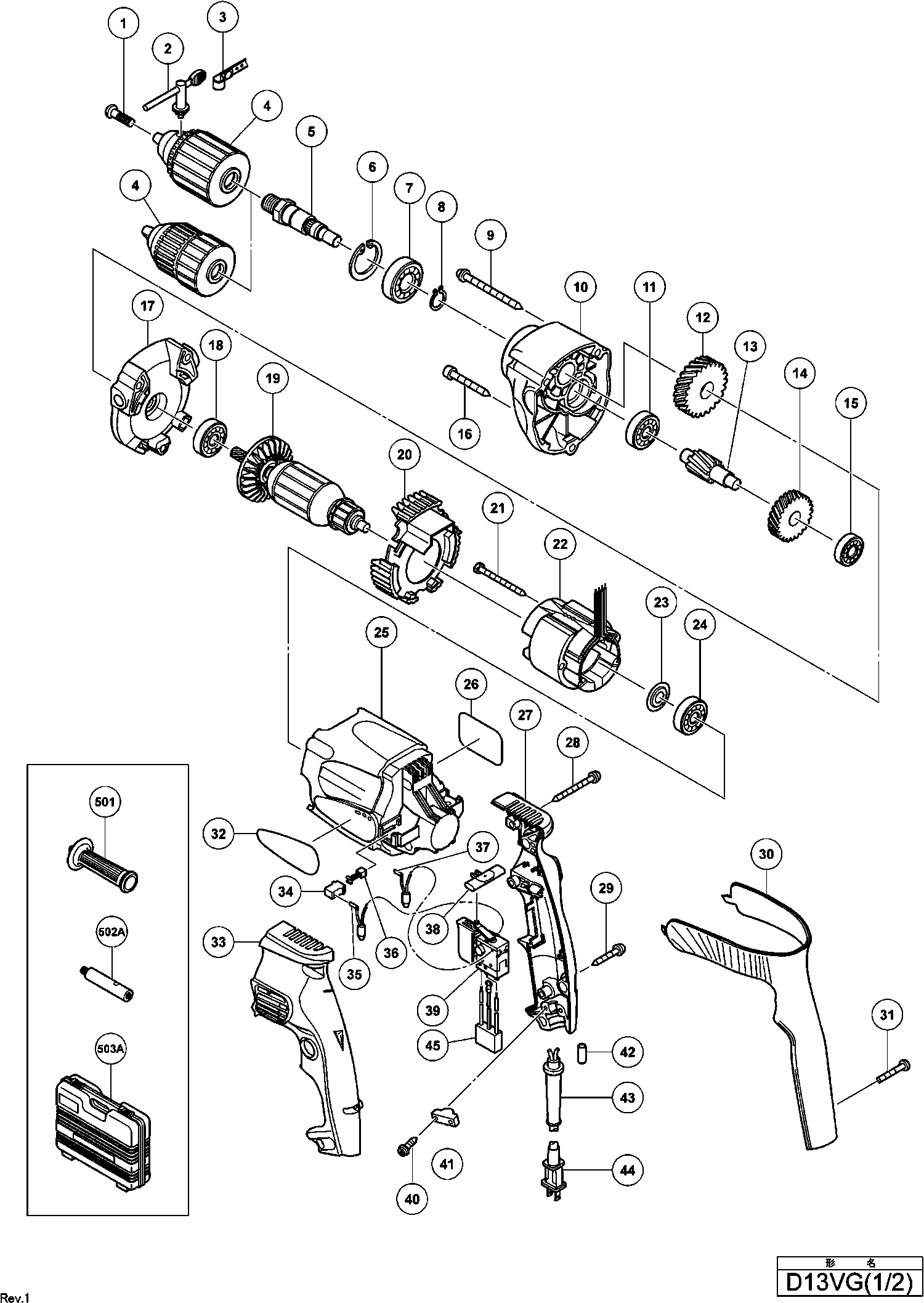 Spare parts list of model Hikoki D13VG