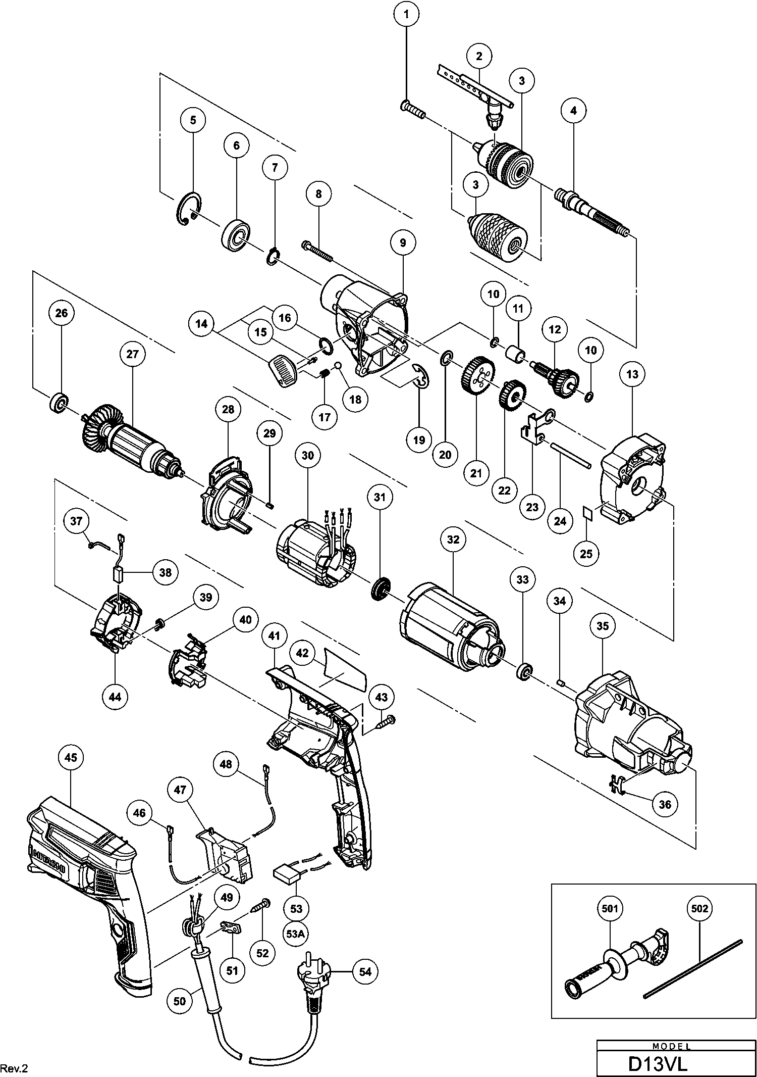 Here you will find all available parts and drawings of the 'Hikoki D13VL'. From here you can order all desired parts directly. Many parts must be ordered from the manufacturer, depending on the brand, this takes one to four weeks. All the information we have is on our website, we cannot advise you on what you need, for that you will need to return the machine for repair. Please note the following when ordering: