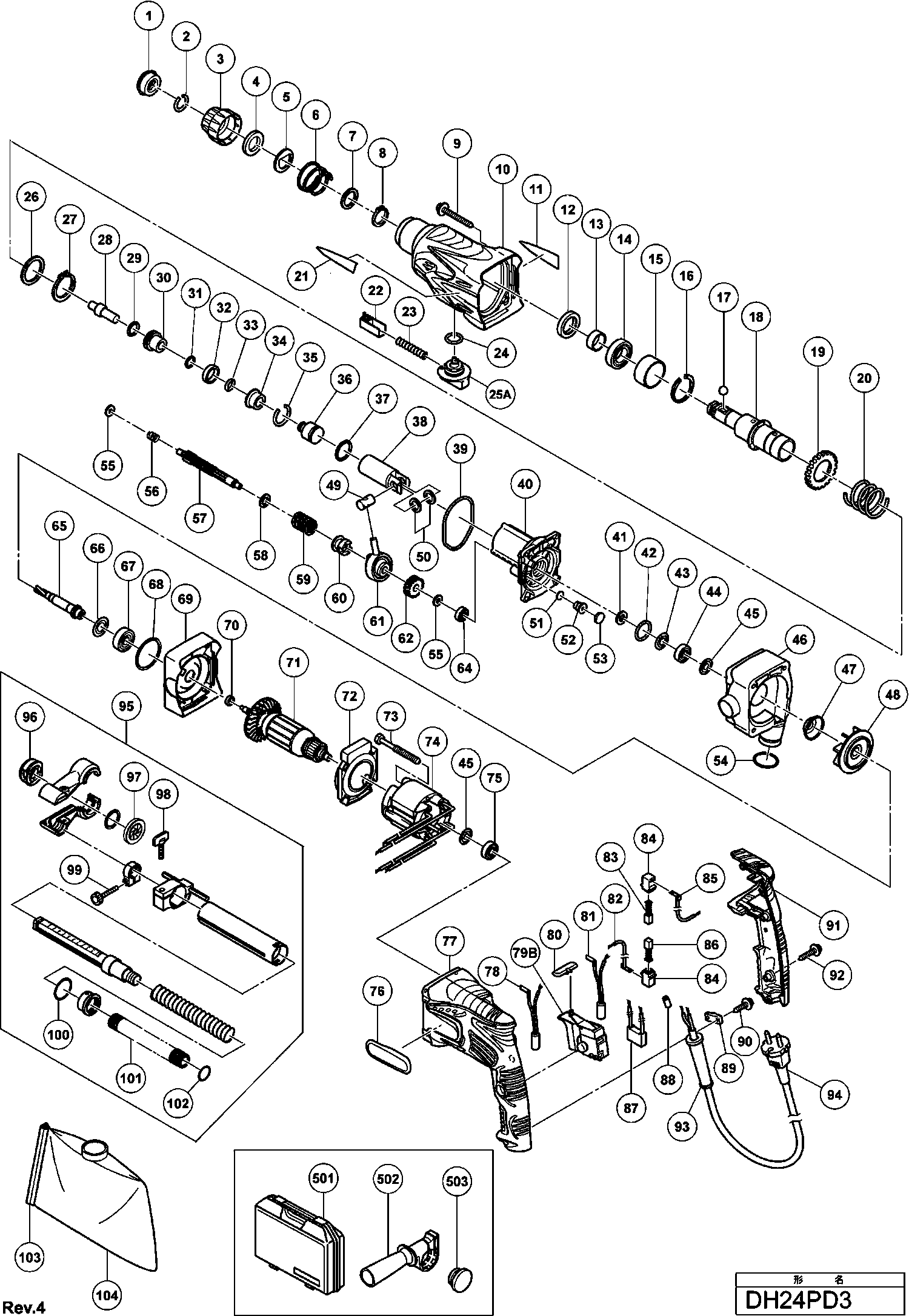 Spare parts list of model Hikoki DH24PD3